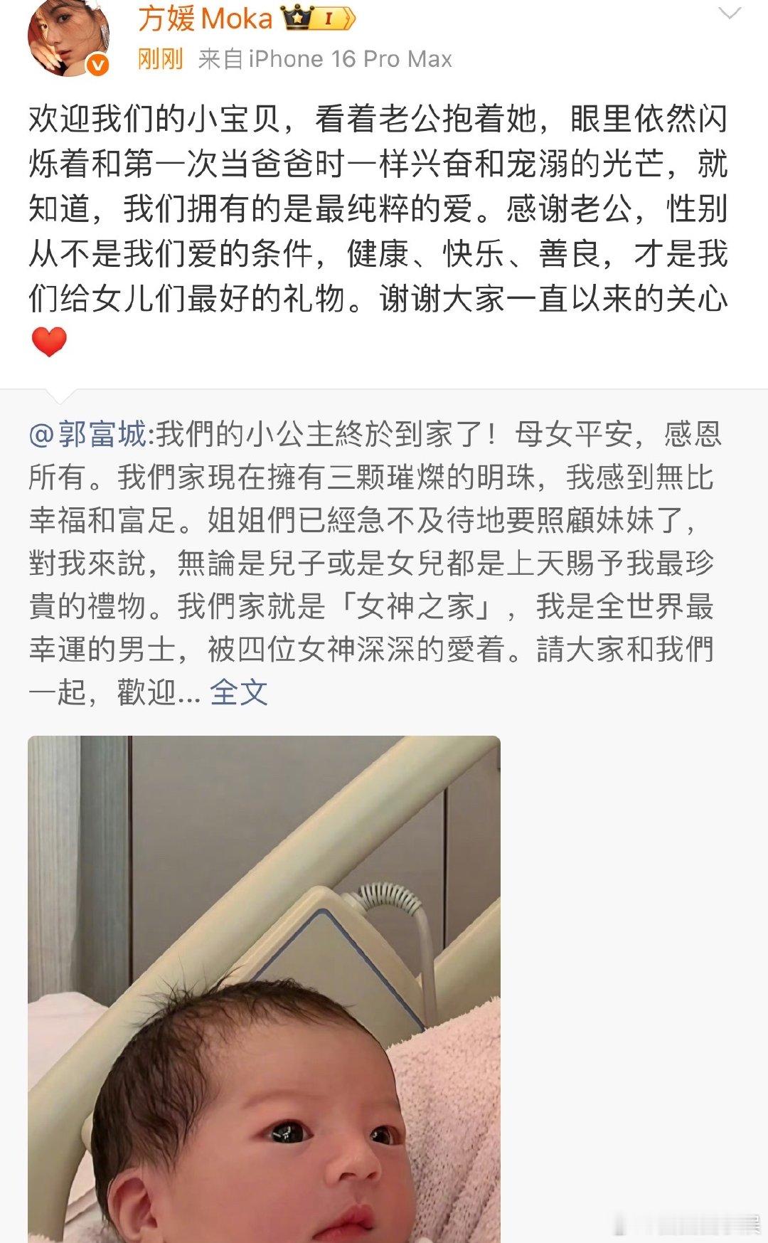 郭富城说我感到无比幸福和富足郭富城说我是全世界最幸运的男士郭富城方媛三胎出生了,