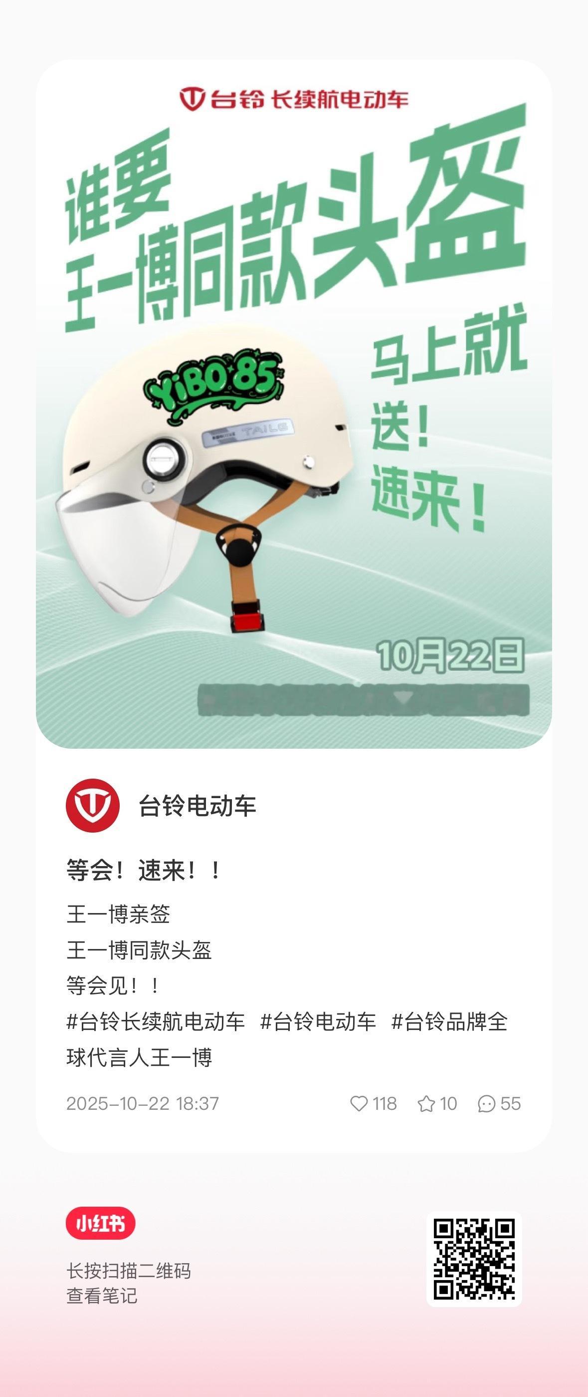 台铃小红书正在直播抽亲签,记得去参与台铃品牌全球代言人王一博