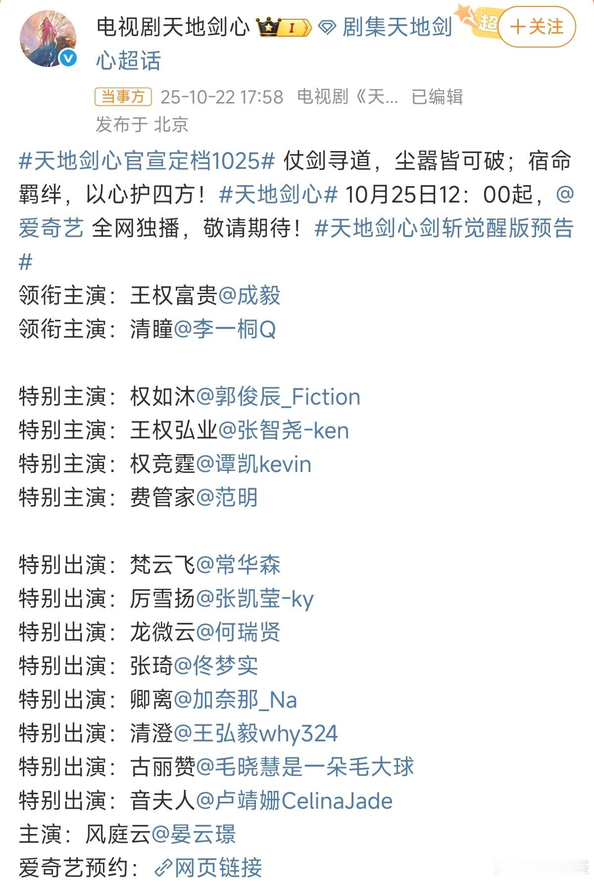 [皱眉]剧方:这剧都来都来,都给特出天地剑心官宣定档1025