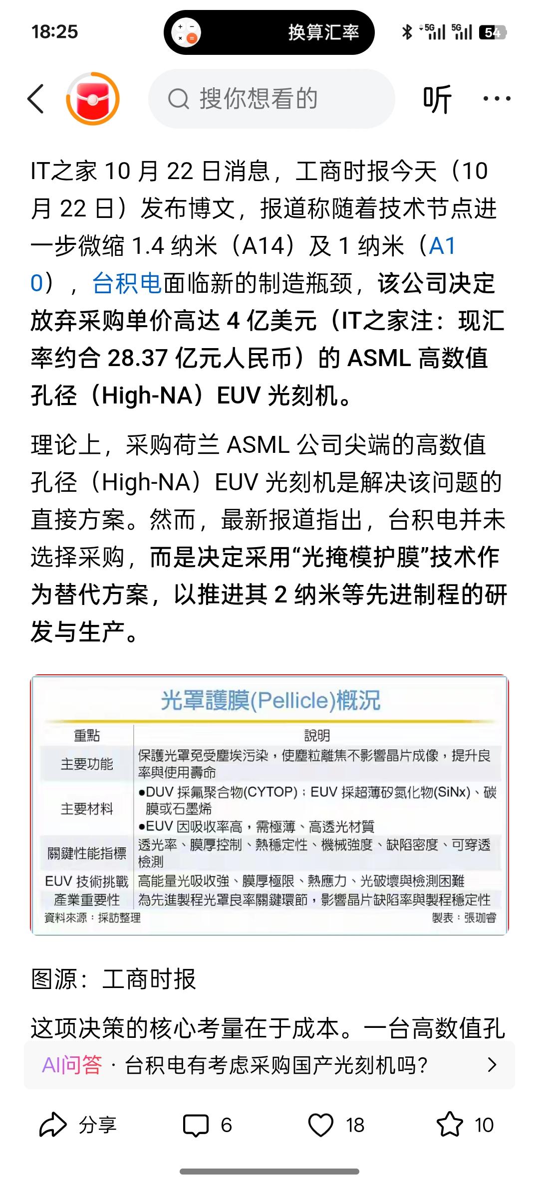 消息称台积电放弃采购 4 亿美元 ASML 顶级光刻机,荷兰光刻机公司直接就傻眼了,这台积电不按套路出牌,直接换了一个方式!直接选择一条路径,成本更低,荷兰光科技也不好卖了,如果连台积电都不够买顶级光刻机,那他还卖给谁? 现在荷兰政府联合安世半导体海海高管想吞并中国海外资产,确实让人看到他们的不守信用!想掠夺中国的资产!
