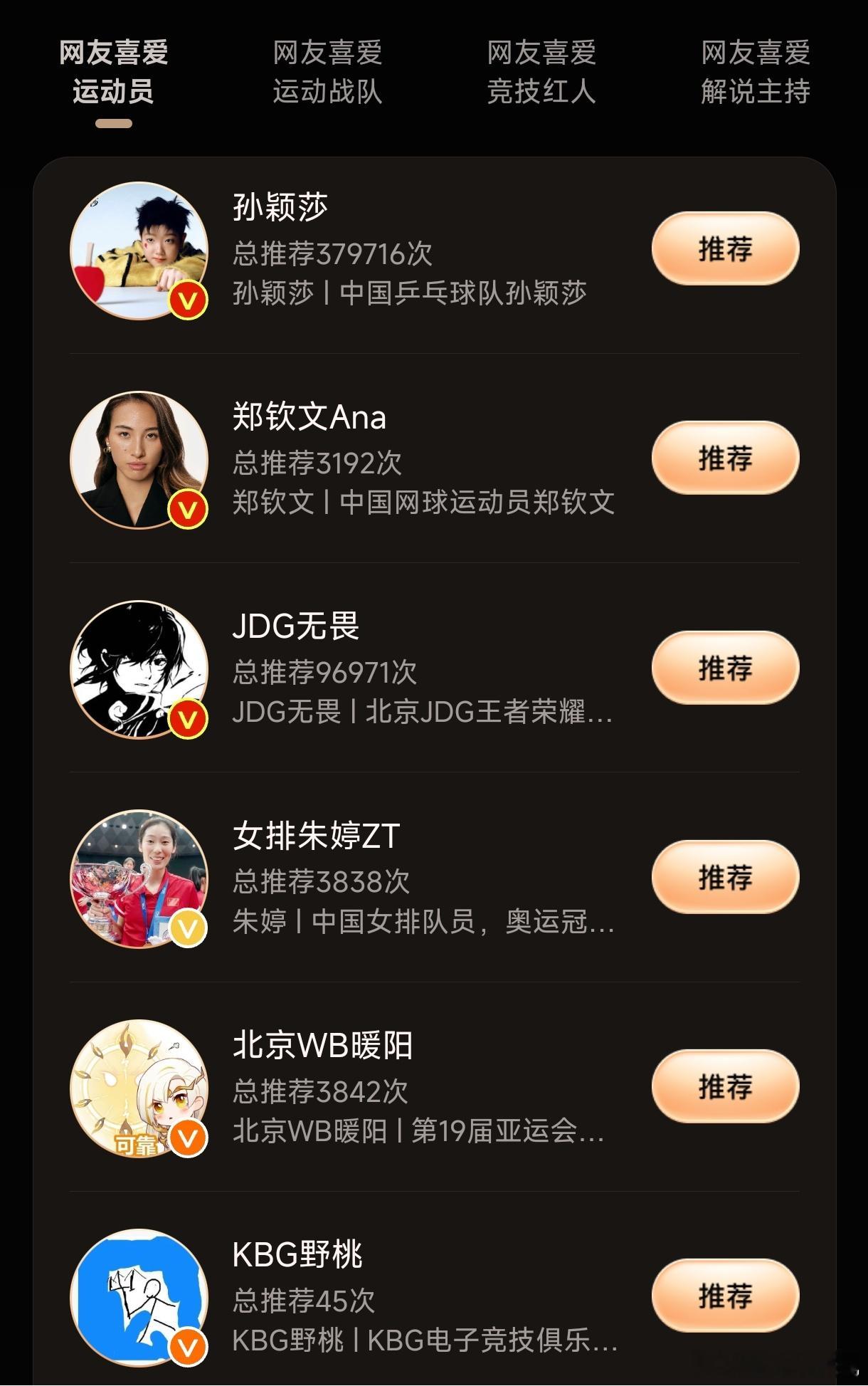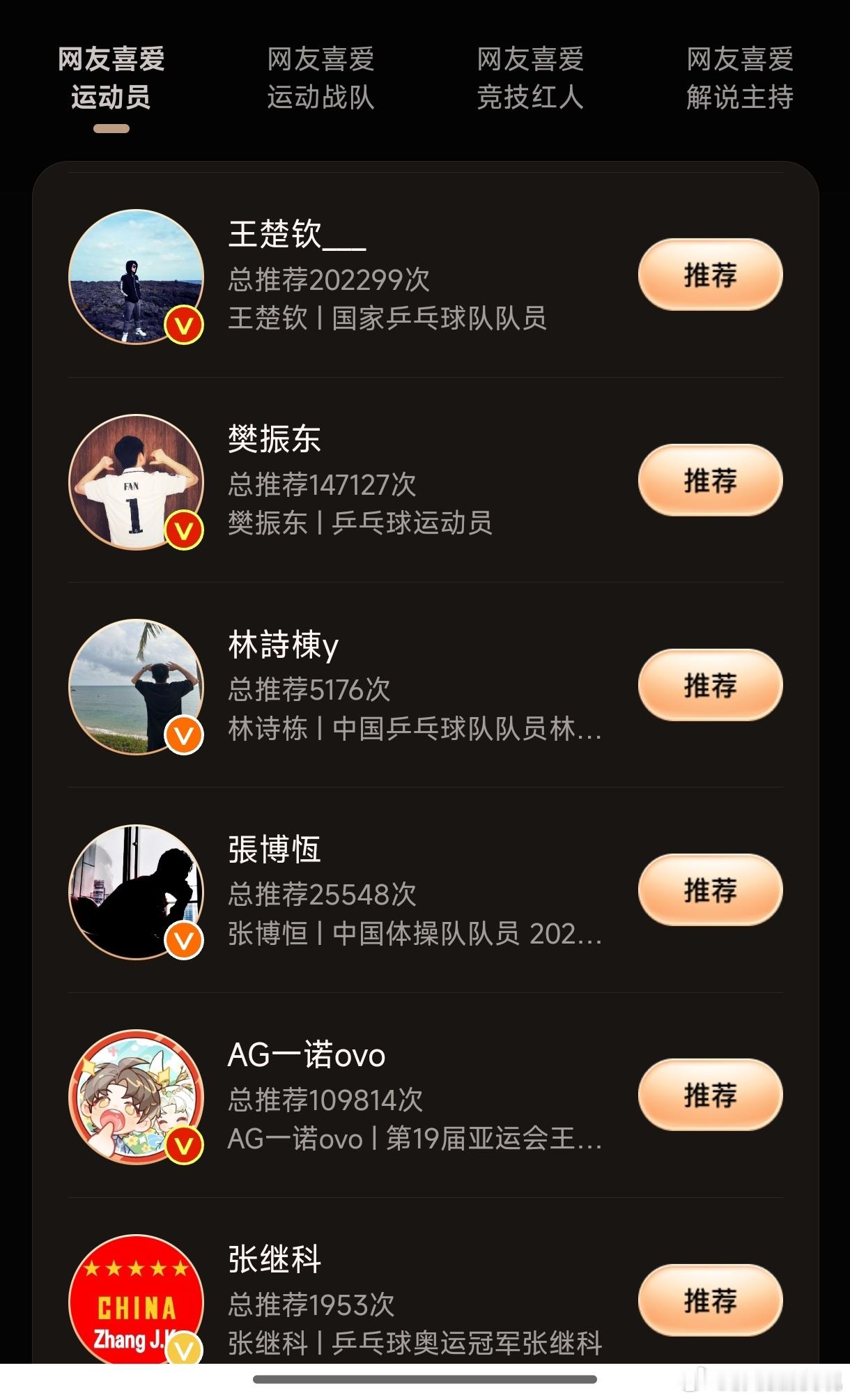 网友喜爱运动员王楚钦总推荐破20万次,孙颖莎已经快到38万次了,莎头组合人气也太高了吧[赞]