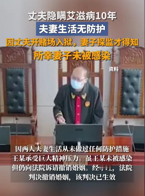 云南,女子在丈夫入狱后,才得知丈夫一直患有艾滋病,已长达10年,这让女子感到十分气愤和害怕。因为丈夫一直称自己得的是“肝病”,甚至在性生活中从不采取安全防护措施。好在女子经过检查,未发现有感染迹象,但女子还是提起撤销婚姻之诉。(来源:荆楚网) 据悉,女子王某和李某相识不久便确定了恋爱关系,又没过多久便领了结婚证,但婚后几年一直没有孩子。 2021年12月份,李某因为开设赌场,被法院判了刑,之后入狱服刑。王某并没有离开李某,还有机会就去探监,诉说思念之苦。 然而在一次探监时,狱警突然要求王某准备一些抗艾滋病的药,这让王某十分诧异,也直到这个时候,王某才得知李某患有艾滋病,而且早在2011年就已经确诊了。 王某顿时气愤不已,因为李某虽然一直有吃药,但他一直说自己是肝病,王某也没有怀疑过。 王某顿时又感到一阵后怕,因为二人自从结婚后,在夫妻性生活上就一直没有采取过安全措施,所以她十分担心自己被传染了。 为了搞清楚自己有没有被感染,王某去医院做了全面检查,发现并没有被传染到,这也放下了心。 不过,李某的隐瞒还是让王某无法接受,所以她向法院提起了撤销婚姻的诉讼。 《民法典》第1053条规定,一方患有重大疾病的,应当在结婚登记前如实告知另一方;不如实告知的,另一方可以向人民法院请求撤销婚姻。请求撤销婚姻的,应当自知道或者应当知道撤销事由之日起一年内提出。 本案中,王某和李某结婚后,虽然发现李某经常吃药,但她并不知道那个药是用来干嘛的,一直以为是治疗肝病的,直到探监时才得知李某患有艾滋病,之后不久王某便提起了诉讼。 因此,王某并未超过1年的诉讼时效。 那李某虽然患有艾滋病,但并没有传染给王某,说明控制得很好,这还算重大疾病吗? 其实,重大疾病并不代表是该疾病是否造成了危害结果,而是看该疾病是否具有重大的传播性、危险性。 按照《传染病防治法》的规定,艾滋病属于乙类传染病,虽然能通过治疗控制,但该病仍属于重大疾病。 因此,不管李某是否控制住了艾滋病的传染,他未如实告知王某,就符合隐瞒重大疾病的条件。 既然如此,王某要求撤销婚姻就有了事实依据和法律依据。 最终,法院是判决撤销了王某和李某的婚姻。自此,王某又恢复了单身,且还是未婚的状态。 对于这起案件,有网友表示为何不强制婚检,这样就避免了很多麻烦。 其实以前我国是有强制婚检的,但之后因为强制婚检的成本偏高、有些人不愿意婚检、有侵犯隐私的嫌疑、导致结婚率下降等问题,所以在2003年新的《婚姻登记条例》出台后,就取消了强制婚检。 此外,婚姻是自由的,如果强制婚检,就违背了自由原则。 因此,如果男女双方打算结婚,有一方坚持不愿意做婚前检查的话,那另一方就要慎重考虑了。 对此,您怎么看?欢迎留言交流。