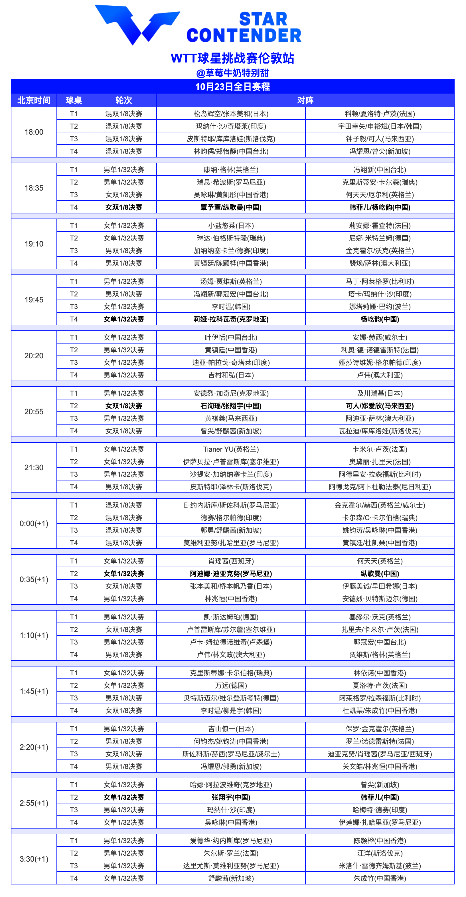 WTT球星挑战赛伦敦站丨10月23日全日赛程