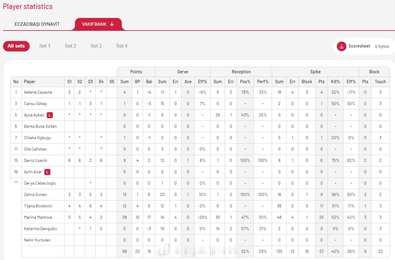 【土超女排焦点战瓦基弗3-1力克伊萨 马尔科娃28分】国际排坛战报速递 10月22日伊斯坦布尔,土超女排第三轮焦点战,瓦基弗银行客场3-1(23-25/25-23/25-21/26-24)力克伊萨奇巴希,与加拉塔萨雷和费内巴切同为三连胜9分领跑积分榜。马尔科娃28分、居内什13分、博斯科维奇12分,卡拉库尔特24分、斯蒂西亚克18分、雷特克14分。