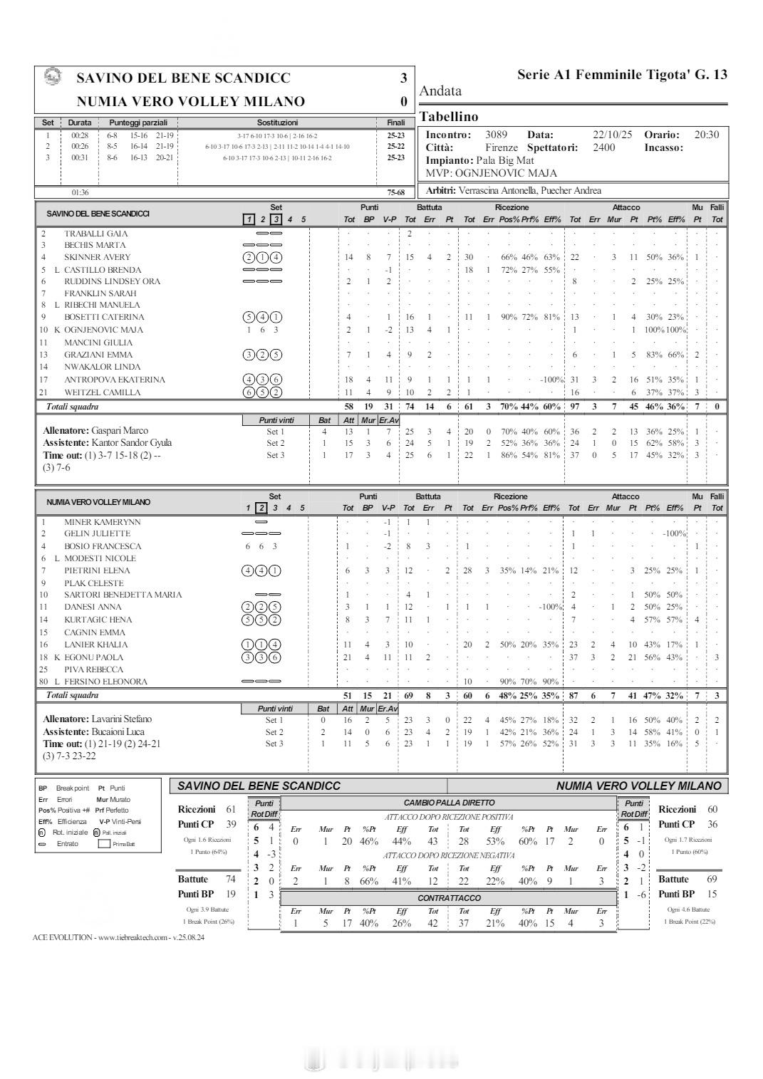 【意甲女排斯坎迪奇零封米兰 加比16分助科内轻取四连胜】国际排坛战报速递 10月22日,意甲女排第13轮提前进行了两场比赛。斯坎迪奇主场3-0(25-23/25-22/25-23)零封刚刚赢得了超级杯的米兰,后者赛季伊始四战两败。安特罗波娃18分、斯金纳14分、魏策尔11分、奥格年诺维奇2分当选MVP,埃格努21分、拉涅尔11分。科内利亚诺客场3-0(25-10/25-21/25-19)轻取皮内罗洛,四连胜升至联赛榜首。MVP加比和哈克各16分、卢比安14分,达维斯基巴11分。