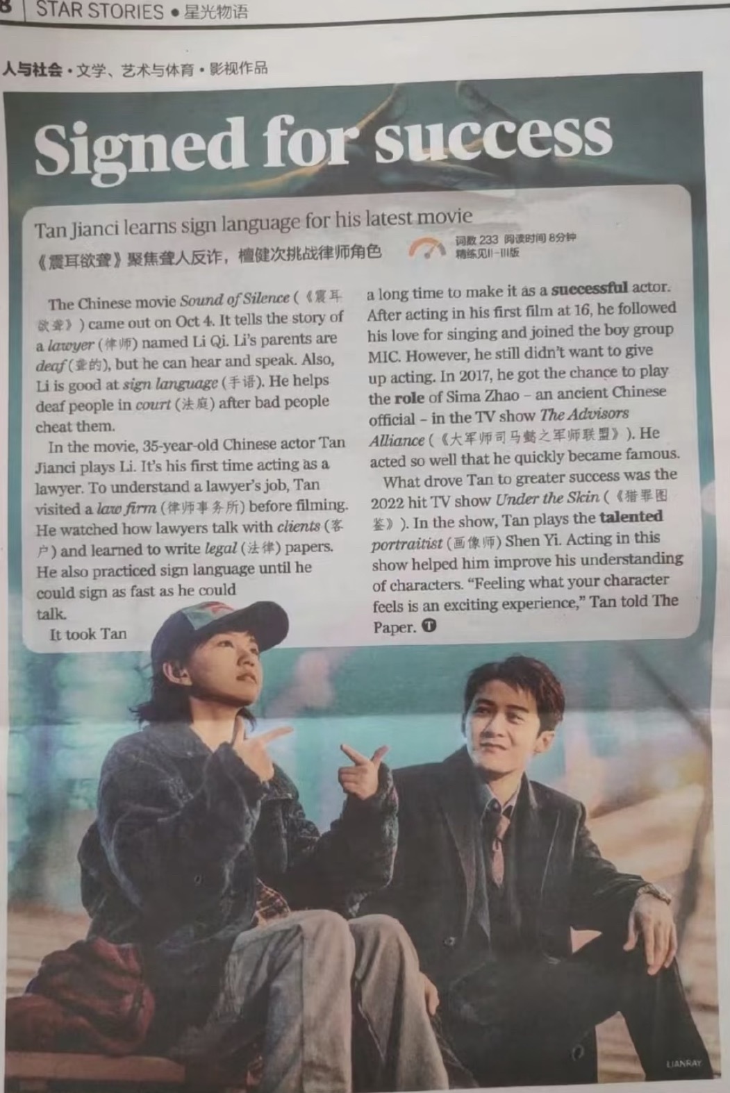 檀健次震耳欲聋登上21世纪英语报了[送花花]​​​