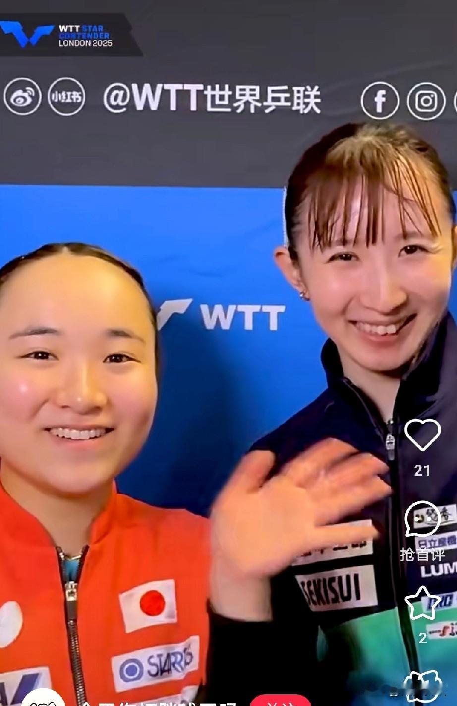 伊藤和早田在一起打球是真的很开心。 这才是快乐双打吧,昨天的比赛中,伊藤美诚从在那等待出场开始,心情就非常好,一边热身一边和早田聊天,她们时而是对手时而是搭档,但更重要的是她们是很好的朋友,是一起长大的好姐妹。 今年早田和伊藤又开始配女双了,看到两个人真的有在快乐乒乓,虽然很久不配,但是默契依然在。这次伦敦球星挑战赛她们两个也是顺利晋级女双正赛,赢下比赛后伊藤和早田击掌,离场的时候早田希娜还给场边的球迷签名,球迷还送了早田希娜一个可爱的小玩偶。伊藤美诚也和球迷合影了,看到伊藤手里也拿着球迷送的小玩偶,两个也都是很好的女孩子。 女双正赛伊藤美诚/早田希娜首轮对阵张本美和/桥本帆乃香,这场比赛肯定也很精彩,看到很多球迷说觉得伊藤/早田能赢,因为伊藤的打法比较克桥本,早田对张本美和胜率也高。不过看了赛程表,她们的女双比赛在北京时间0:35,想看得还得熬夜了。