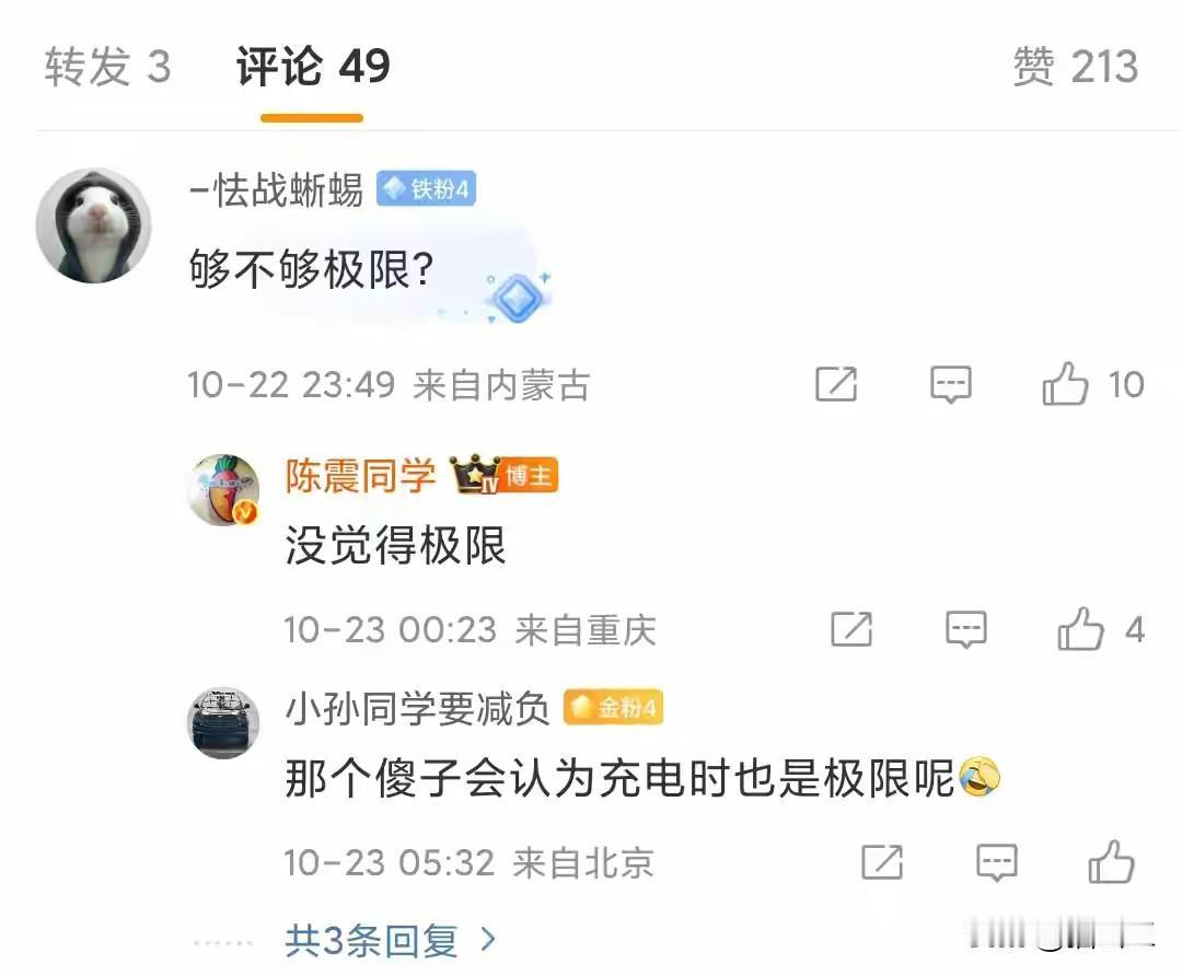 新能源车48小时高环测试, 还上珠峰,还全程直播, 看来这次的新车型长安启源A06也是豁出去了! 而且到现在为止,24小时内已经行驶了3114公里的里程,充电次数21次,接下来的48小时成绩大家拭目以待! 有意思的是,陈震明明给人家做了宣传,接了人家商单,在评论区还说人家不够极限,这算不算吃完饭骂厨子?[我想静静]