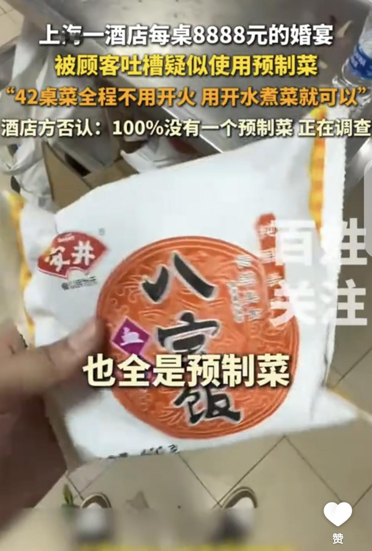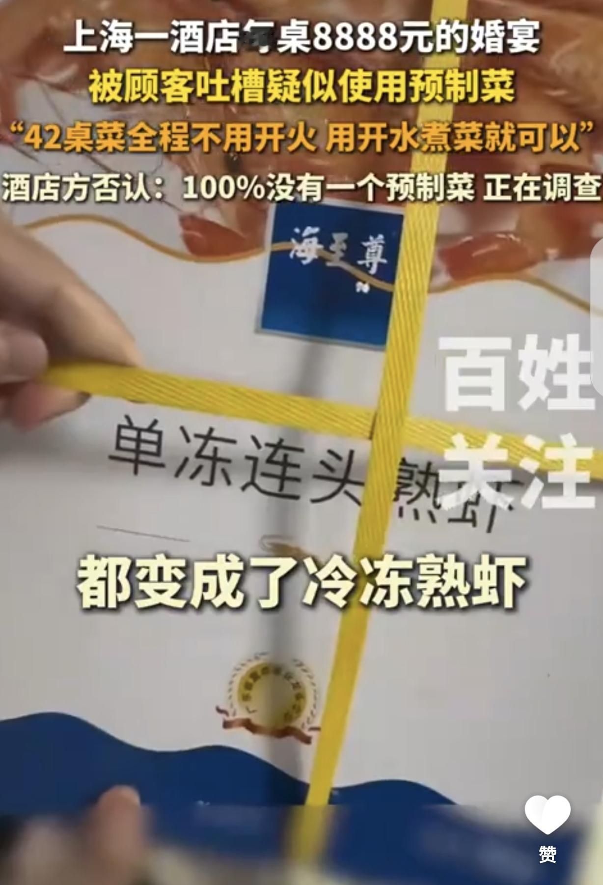 上海,一男子结婚,在酒店花37.98万,以每桌8888元的标准,定了42桌酒席,可亲朋好友都说菜难吃,海鲜贝壳只有贝壳没有肉、白切鸡还有血水,怀疑酒店是预制菜,男子闯进后厨一看,眼前的一幕顿时让他傻眼了,橱柜上有大量包装好,处理好的预制菜,男子一怒之下给曝光了。酒店不但一口咬定100%没预制菜,竟然还给男子发了律师函,要求他立马删除视频并赔礼道歉,否则对他不客气。 一男子的爱情修成正果,双方选了个良辰吉日,准备喜结良缘。 婚礼是每个人一生中的大事,人生四大喜之一就是“洞房花烛夜”,男子拿出全部的精力和热情,甚至倾其所有,想办一场隆重的婚礼,不让人生留下遗憾。 于是,男子在某酒店,花37.98万,定了酒席,酒席标准高达每桌8888元,这水平不低了,既不让自己丢了面子,也能让亲朋好友吃好喝好。 为此,男子花了心思选择菜品,虽然是众口难调,但只要能上得了台面的,他都加进婚宴菜单上了。 可万万没想到,开席后,宾客对酒宴都议论纷纷,窃窃私语,都吐槽菜品难吃,甚至怀疑酒店用的是预制菜。 比如德国咸猪手、八宝饭等菜品、点心,感觉都不是现做的,新鲜虾也变成了冷冻熟虾,马蹄笋也都是预制菜口感。 更让人倒胃口的是,海鲜贝壳只有壳没有肉、白切鸡盘子里,甚至还带着血水…… 男子怒了,心里很不是滋味,他以为自己花了这么多钱筹备的婚礼,一定会让亲朋好友赞不绝口,津津乐道,没想到会是这个结果,他如芒在背如鲠在喉,觉得脊梁骨快被戳破了。 男子找酒店理论,可酒店矢口否认,信誓旦旦的说,100%没有一个预制菜。 真是不见棺材不落泪呀,既然你们死不承认,那我就自己去找证据。 男子立马闯进酒店后厨,眼前的一幕直接让他呆若木鸡,只见橱柜上,摆满了包装好,处理好的预制菜。 显而易见,酒店没想到男子会闯入后厨,还没来得及隐藏预制菜证据,被男子尽收眼底。 而橱柜上的很多预制菜品,都出现在他的酒席上,男子火冒三丈,他可是花了37.98万酒席钱呀!竟然让宾客吃了一肚子预制菜,不知情的还以为他图便宜。 这哪里是每桌8888元标准,连888都不值,在男子看来,从本质上说,这和抢劫无异,婚宴是喜事,但凡好一些,谁愿意无事生非给自己找晦气。 可万万没想到,证据确凿,酒店还不承认,男子一怒之下,在网上曝光了这家酒店。 可不料,酒店恶人先告状,竟然说男子“发布不实言论”,不但给他发了律师函,还态度嚣张的要求他立马删除视频,还要公开给酒店道歉,否则没他好果子吃。 记者联系酒店,酒店拒绝回应,记者又以顾客的名义打酒店的订餐热线,工作人员说对于婚宴的事正在调查。 其实,想求证真相不难,如今的酒店后厨,一般都安装监控,明厨亮灶,查看不就知道了!后厨视频打开就可以了。 越是高档酒店越容易出问题,农村酒席都是自己支起大锅,煎炒烹炸,烧柴火炒现成的,都拒绝预制菜了,大酒店却暗箱操作,以次充好。 在国外预制菜非常普遍,因为发达,法律法规比较健全。但是在我国,没有统一的预制菜标准和相关的法律法规。作为一个高档的酒店,这么高的价位的菜就不应该是预制菜,如果要用到预制菜,必须提前告知消费者。 但事实是,越是大酒店越多预制菜,生意好了忙起来那有时间一锅锅的炒,用预制菜快而方便,省时省力挣钱多。 不要混淆预制菜和提前加工的菜品 通常婚宴前一天 比如肘子 鸡鱼等烹饪时间较常的菜品会提前准畚一批 最多也就冷藏保鲜 第二天再加工一遍上桌 农村的大席也是一样 但它绝对不会加防腐剂 保质期也就一两天 而且最多冷藏一天 否则冷冻后的菜品会失去鲜味。 《消费者权益保护法》第8条规定:消费者享有知悉其购买、使用的商品或者接受的服务的真实情况的权利。 男子选择高价位酒店,合理期待是“现做菜品”,符合“隆重婚礼”的需求。 酒店未提前告知使用预制菜,反而明确否认称“100%没有一个预制菜”,直接剥夺了男子的“选择权”,如果提前知晓,男子可能不会选择该酒店,或要求降低价格。 酒店的行为侵犯了男子的知情权,违反了经营者的“信息披露义务”。 《消费者权益保护法》第55条规定:经营者提供商品或者服务有欺诈行为的,应当按照消费者的要求增加赔偿其受到的损失,增加赔偿的金额为消费者购买商品的价款或者接受服务的费用的三倍;增加赔偿的金额不足五百元的,为五百元。法律另有规定的,依照其规定。 酒店明知使用预制菜,后厨有大量预制菜包装,却故意向男子宣称“100%无预制菜”,利用男子对“高价位=现做”的认知误区,误导他支付高价; 根据《消法》第55条,酒店的行为已构成“消费欺诈”,男子有权要求三倍赔偿,即37.98万×3=113.94万元。 男子曝光视频是维护自身合法权益的行为,酒店发律师函要求“删除视频、赔礼道歉”缺乏法律依据。 关注@灋律盐究员 学法辩是非,用法止纷争。