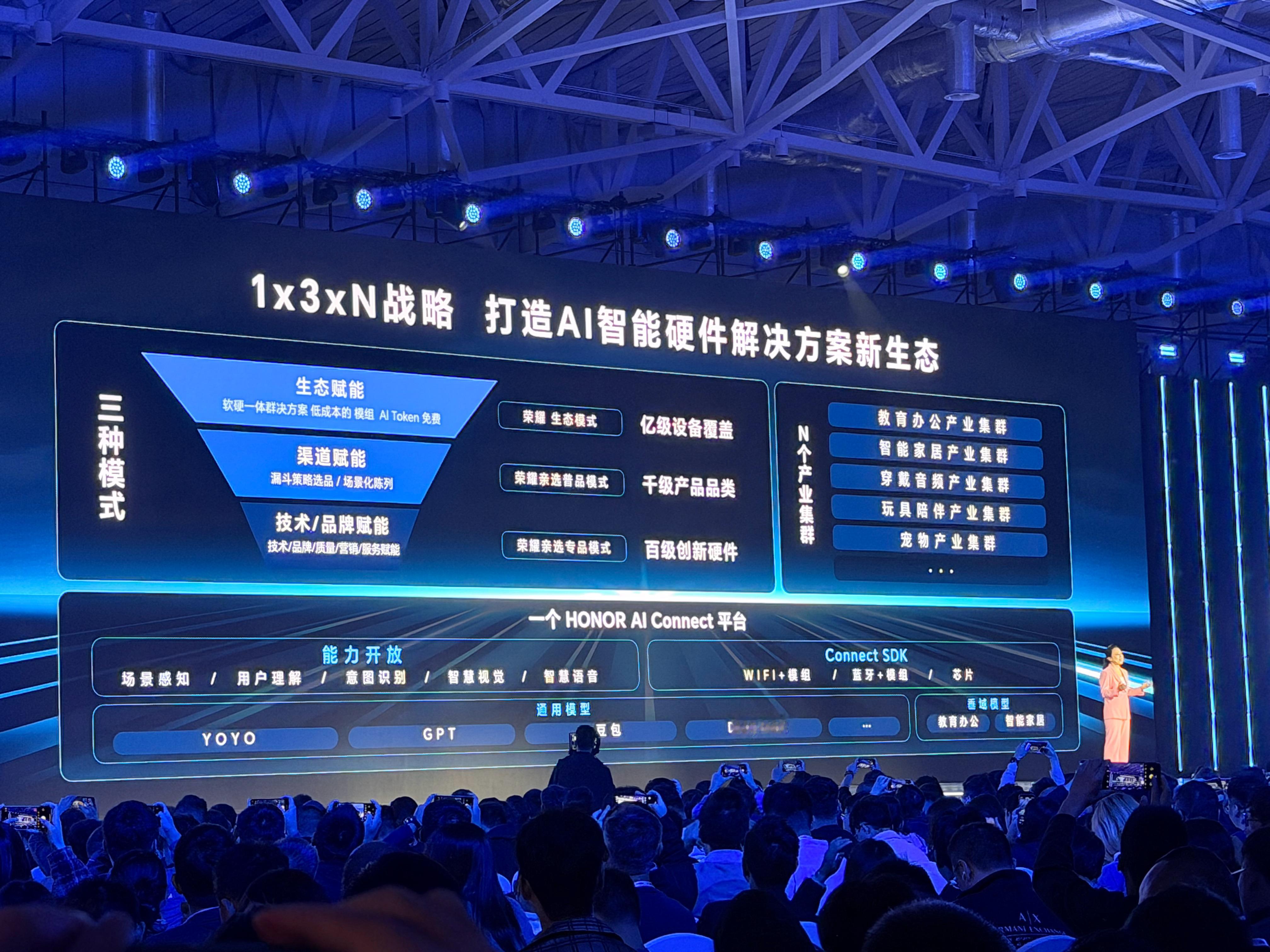 荣耀全球开发者大会20251荣耀正式发布八大AI场景化生态解决方案,覆盖家居、车联、陪伴、宠物、运动健康、教育、音频、办公等高频场景。