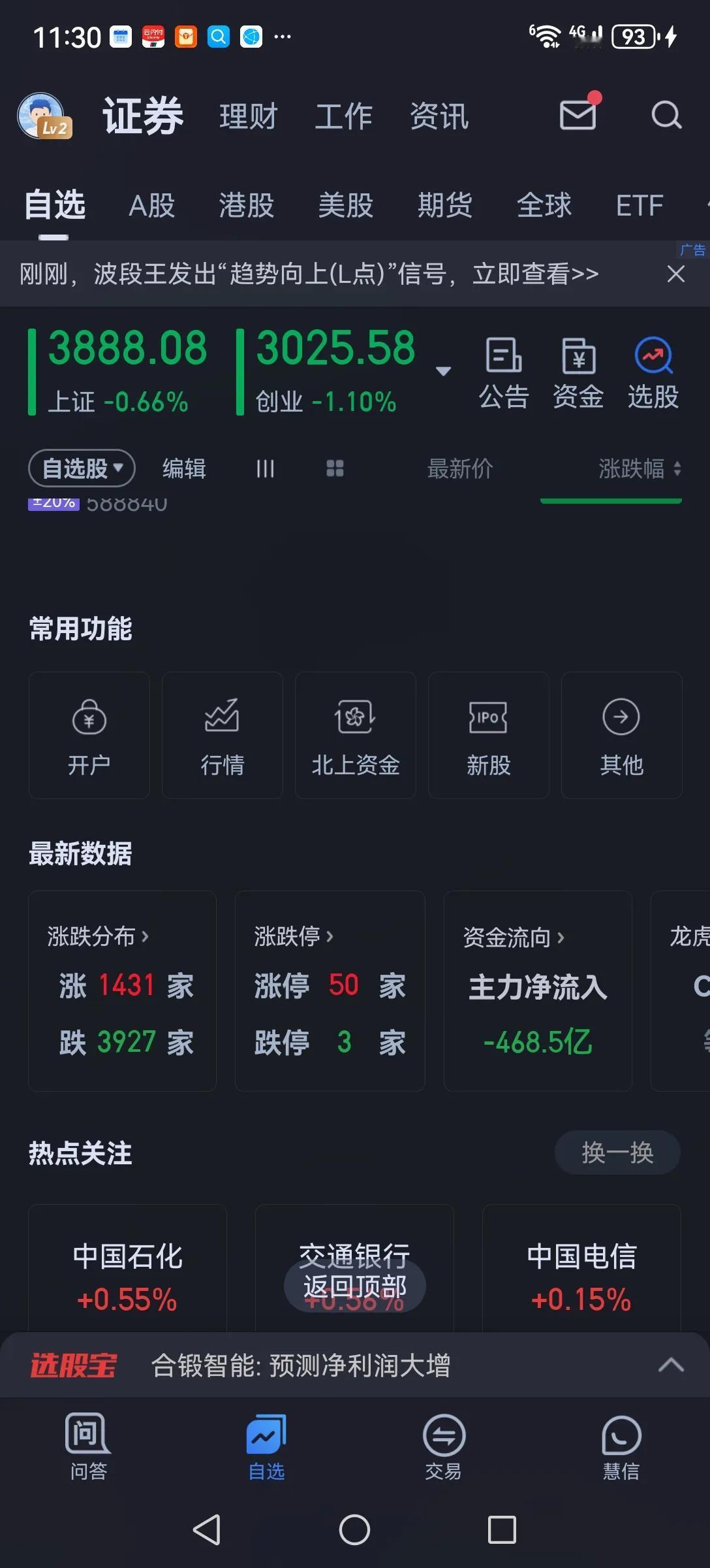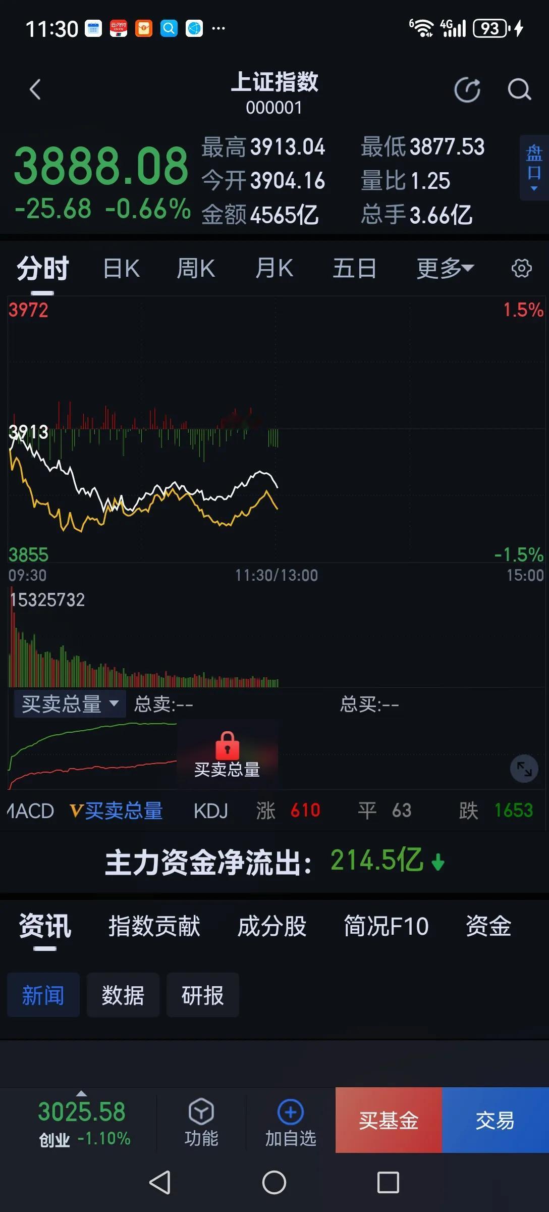 券商护盘可惜晚了。今日早盘大幅下跌,此时主力才想起用券商护盘,可惜太晚了。成交量大幅萎缩,人气散了,近四千家个股下跌,调整趋势己成。