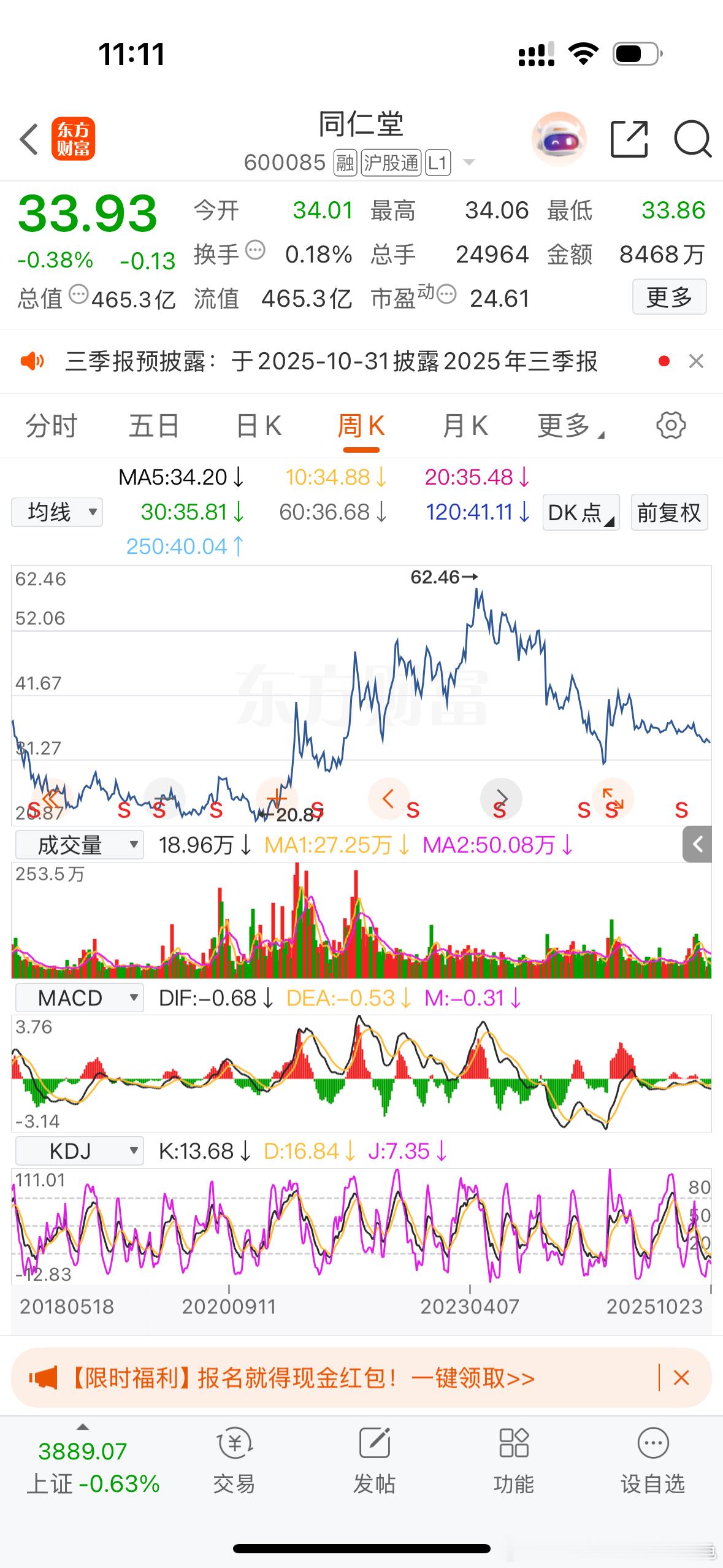 同仁堂又回到了4年前33-34附近。