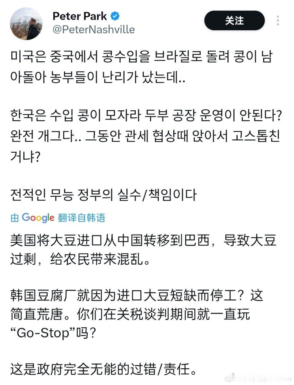 这事是真的,美国大豆滞销的时候,韩国豆腐厂因为进口大豆短缺而停工停产,太荒唐。