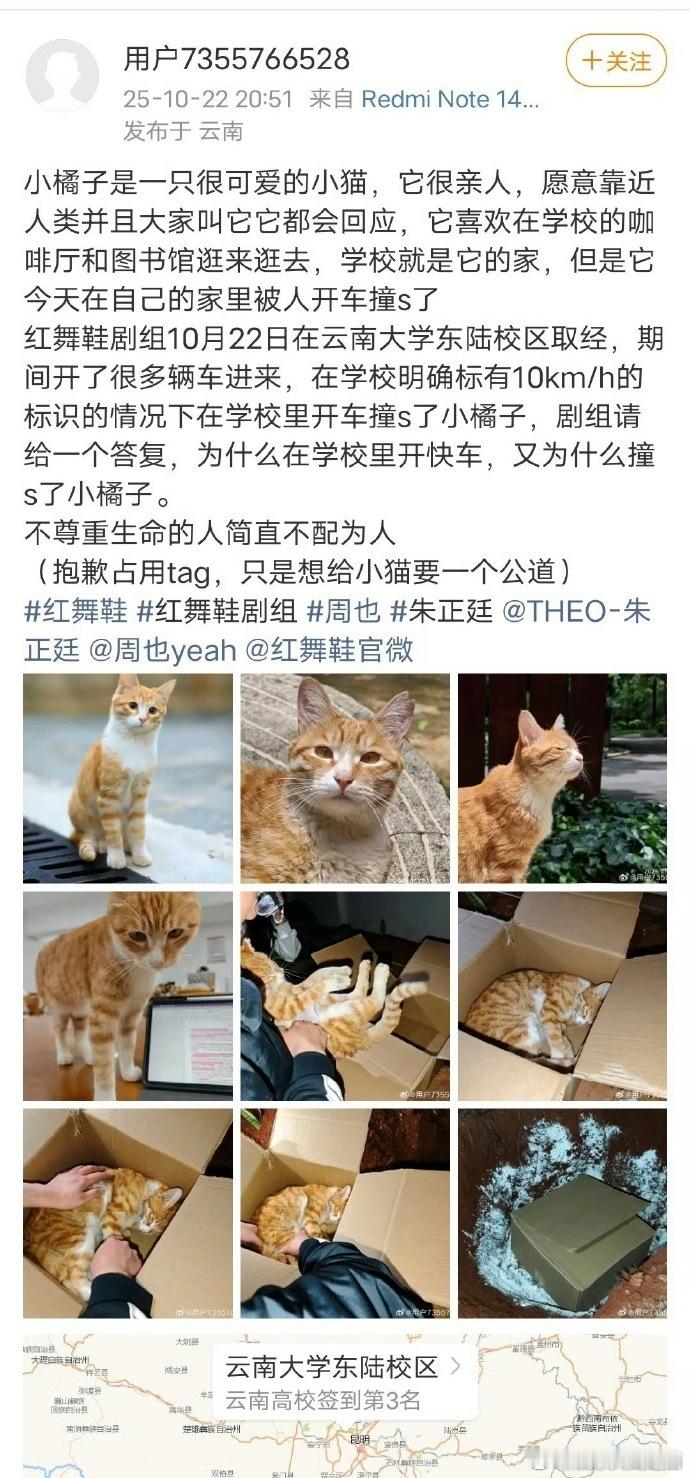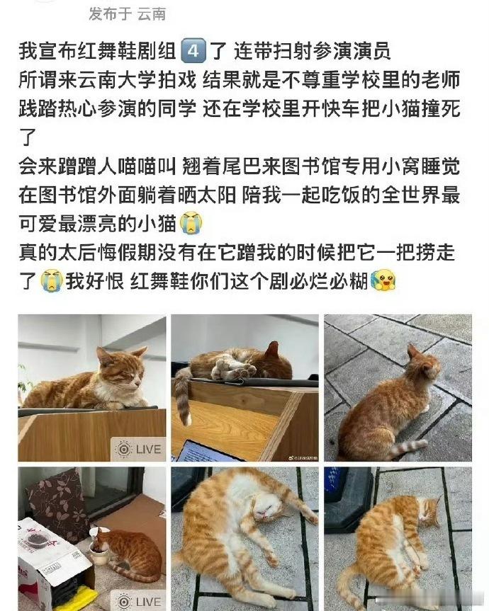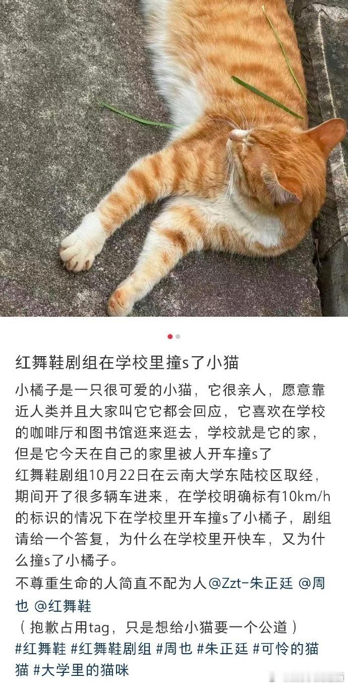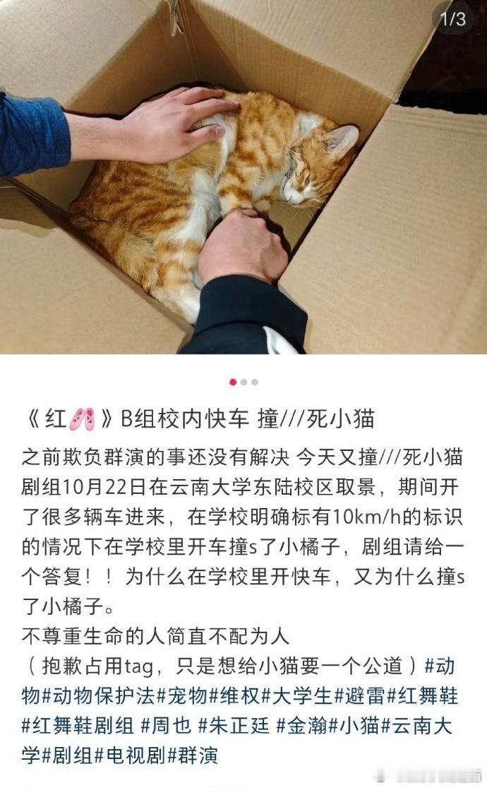 红舞鞋曝红舞鞋剧组开快车撞死猫红舞鞋剧组将以小橘子名字成立基金