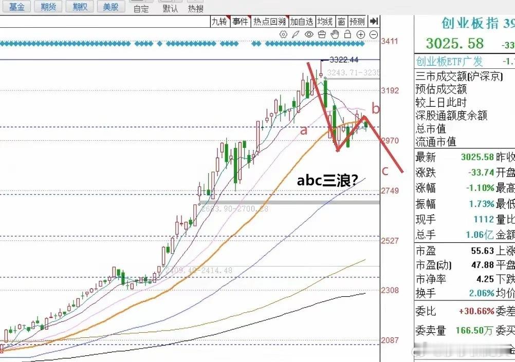 上午收盘了三大指数全线调整,截至上午收盘上证指数跌0.66%,深圳成指跌0.87%,创业板指跌1.1%截止上午收盘三市的成交额1.06万亿,比上一个交易日小幅缩量560亿。截至上午收盘两市上涨的家数1402家。下跌的家数3887家。从今天上午市场的走势来看,基本上就是符合我的预判,大家可以看一下图一莎莎昨天晚上更新的关于今天走势的手绘预测图