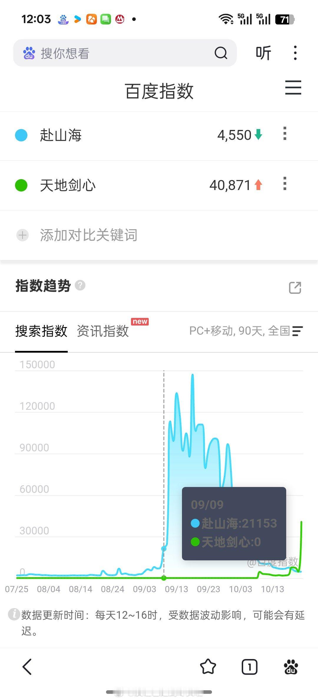 《天地剑心》昨天定档百指破4w,《赴山海》定档日百指破2w,《天地剑心》期待度很高呀