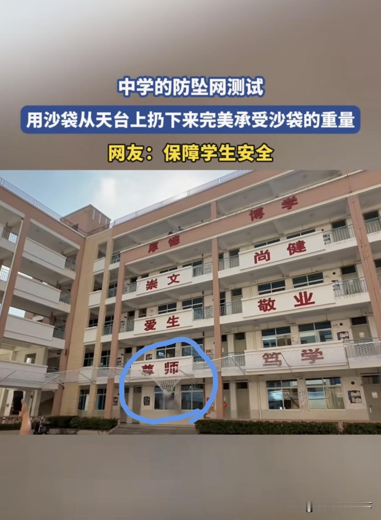 用铁丝网就想网住学生的安全,想想也挺搞笑的,为什么老是做一些掩耳盗铃的事情? 现在很多学校都在做这个防坠网,美其名曰保护学生安全,以防学生跳楼。 但是花那么多钱去搞一些真的能保护学生嘛?学生出事是因为没有防坠网? 我认为,搞这种没啥用,如果学生想跳,你怎么拦都没用,你这里不能跳,那他去别的地方跳得不得? 所以真正解决的是学生的心理问题,而不是现在随便挂个网就得了。 有🈶网友表示:与其这样费钱费力,不如将课间休息时间由10分改成20分钟,让学生课间疯玩,释放压力,身体健康了,情绪也稳定了。将音乐课正常还给孩子们,让他们尽情的歌唱吧。 也🈶网友表示:80后的我们,根本没有叛逆期,没有忧郁症,因为稍微不如意,直接家法就放身上了,一次不行就两次,大打三六九,小打天天有,哪里还有什么叛逆期和抑郁症呀。 还🈶网友表示:出现问题只是解决表面问题,而不是去饮水思源,寻找源头。学校不只是教孩子知识,还有处理各种事情的能力。 不知道大家对此事怎么看?欢迎留言一起探讨交流。