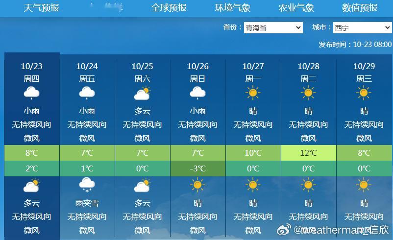 今后3天,台湾和海南,在冷空气东北风的影响下,还有明显的降雨,但总体强度弱于之前。另外青藏高原降雪会明显增多。西宁在24日晚-25日晨,有可能出现今冬初雪。常年(1991-2020年平均)西宁初雪日为10月22日,基本符合常年情况。