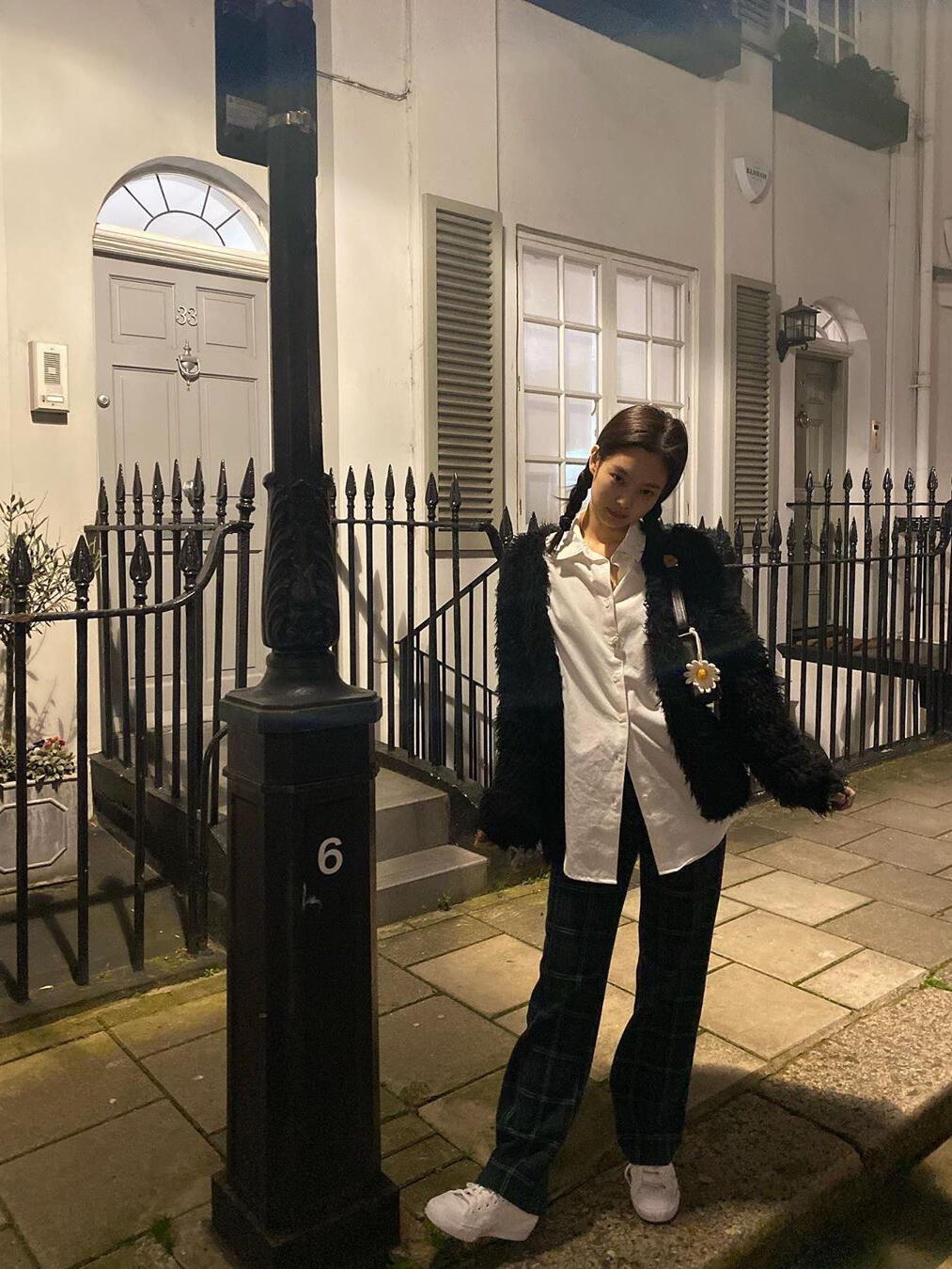张天爱跟素人合影,胯真的好宽,大宅院似的