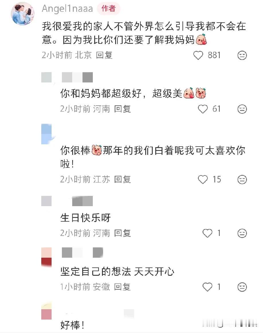 甜馨13岁生日,她发文感谢妈妈李小璐:我爱你妈妈,谢谢你13年辛苦付出! 甜馨还发了多张从小到大与妈妈的合照,并不是和妈妈光鲜亮丽的写真,而是日常陪伴自己点点滴滴真实的妈妈。 在评论区她也再次强调维护妈妈:我很爱我的家人,不管外界怎么引导,我都不会在意,因为我比你们还要了解我妈妈! 不得不说甜馨真的是一个很懂得感恩的好孩子呀,不被外界干扰内心也是很强大,抛开其他不说,李小璐作为一个妈妈,对孩子的爱就是纯粹的妈妈的爱,甜馨有这样爱她的妈妈也是很幸福的! 有个这样贴心的小棉袄,李小璐也很圆满很很骄傲了,她13年的辛苦也没有白费。李小璐