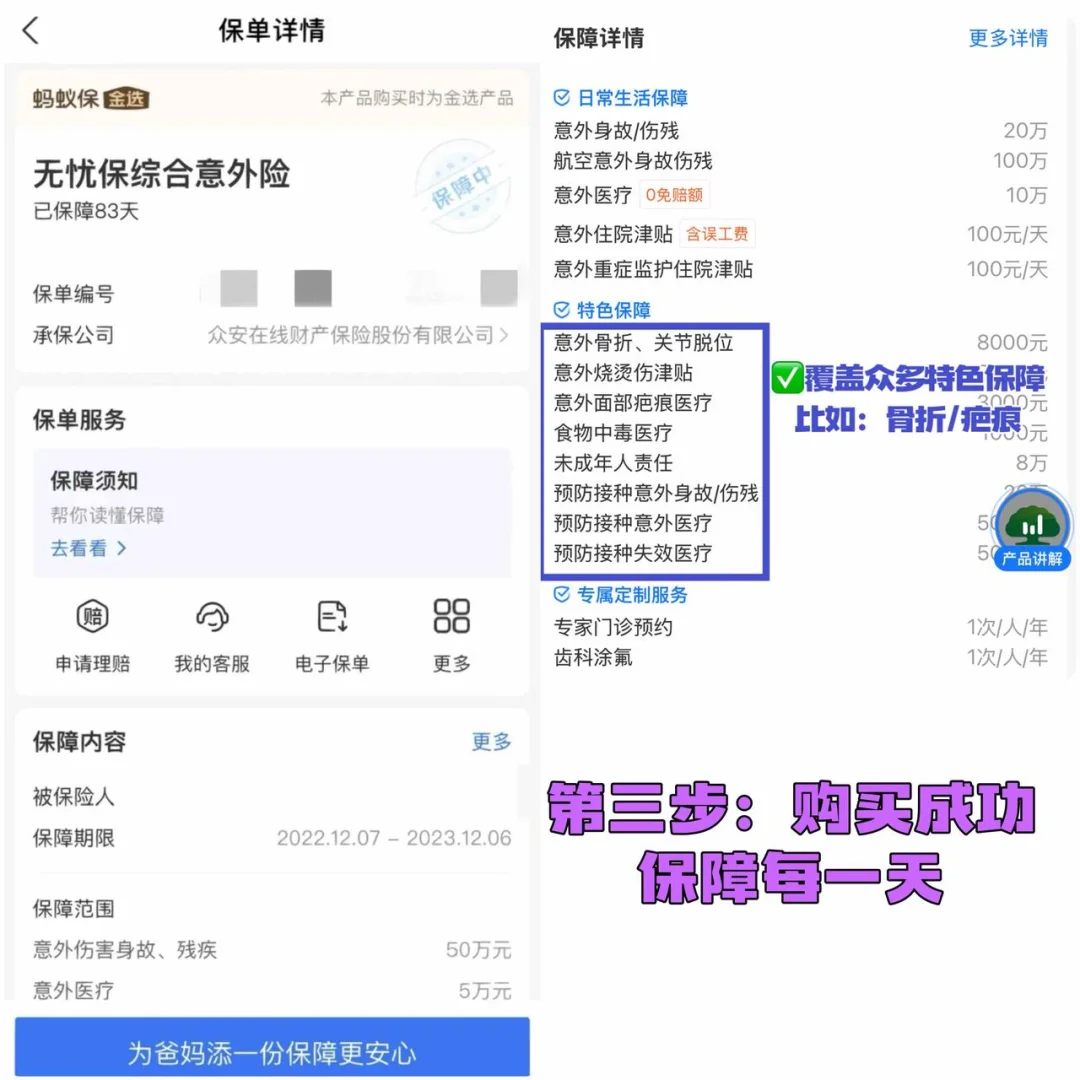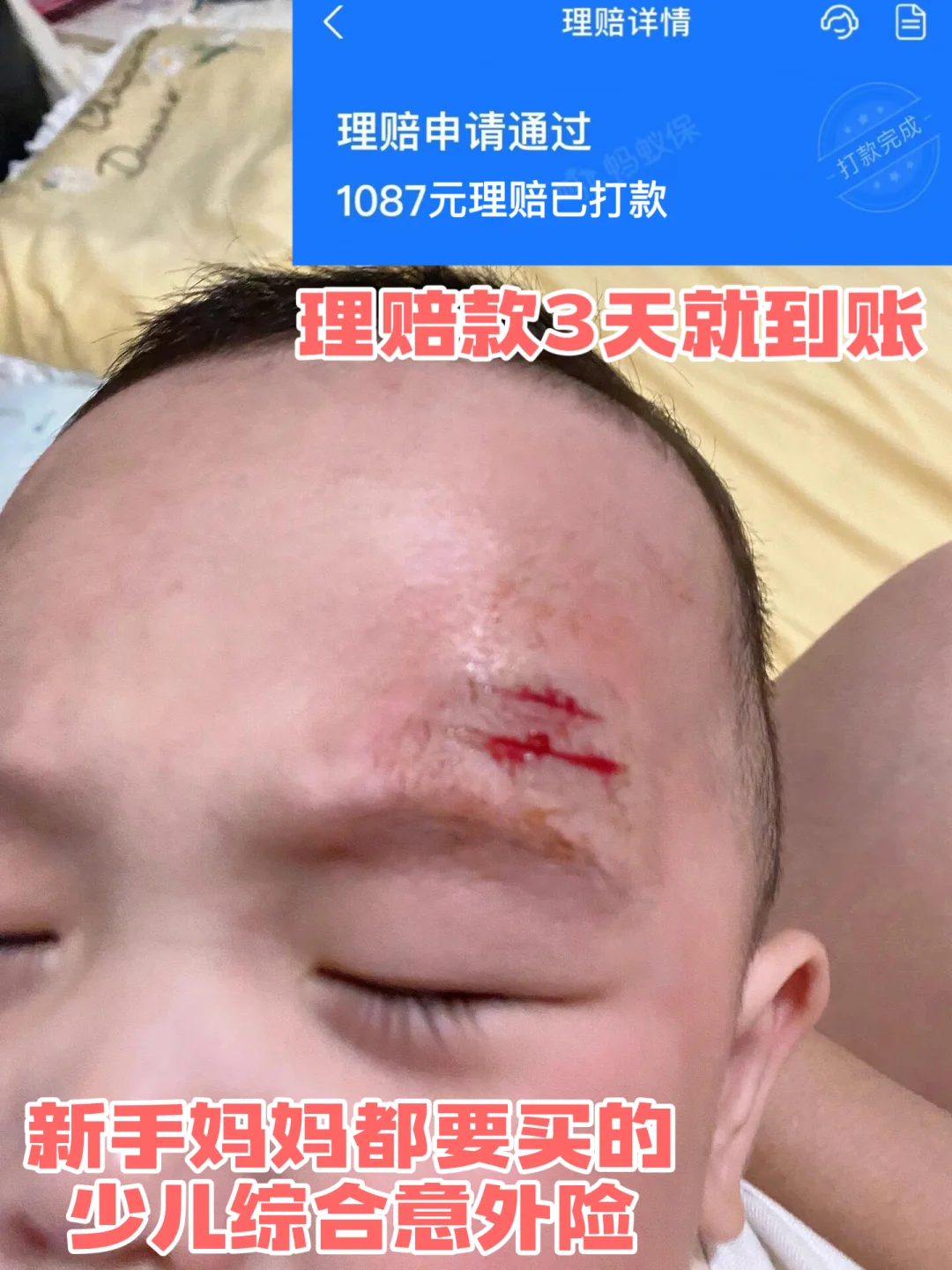 除此之外,一定一定要给孩子买少儿意外险!我家就是买了无忧保少儿意外险,这次还赔了,个人觉得真是刚需。