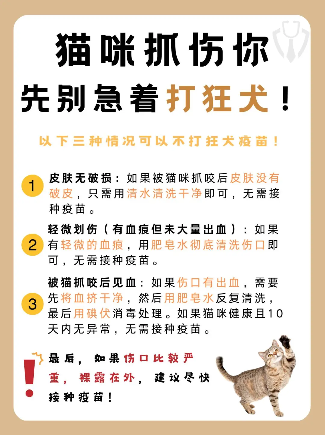 ✅猫咪抓咬人3⃣种情况可以不打狂犬