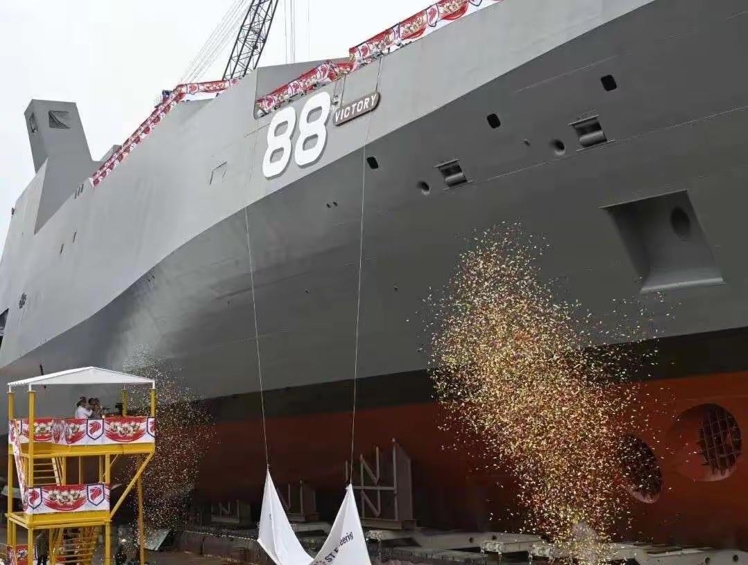 东盟最大级别军舰下水阻止有人关键时候卡住马六甲海峡 据《联合早报》10月22日消息,新加坡海军的胜利级多用途军舰“胜利号”当天举行下水仪式。这艘全长150米,排水量8000吨,航速22节的大舰,新方计划一共下水6艘该型军舰。新加坡军方称此举是为了更好的保护马六甲海峡的通航不受外部势力危胁。 这也让此前东盟最大的军舰,印尼的143米,排水量6350吨,航速18节的军舰降到第二位了。