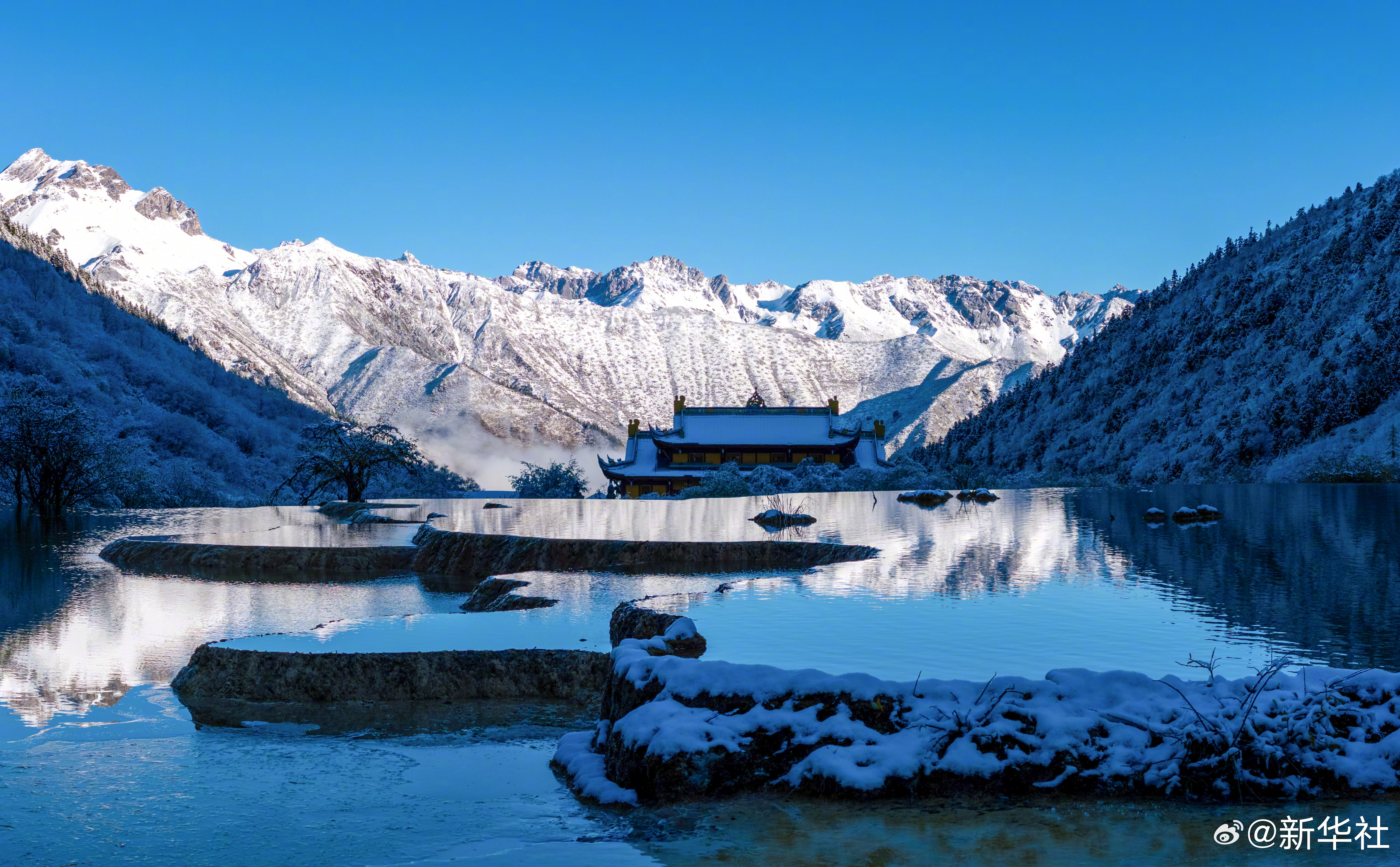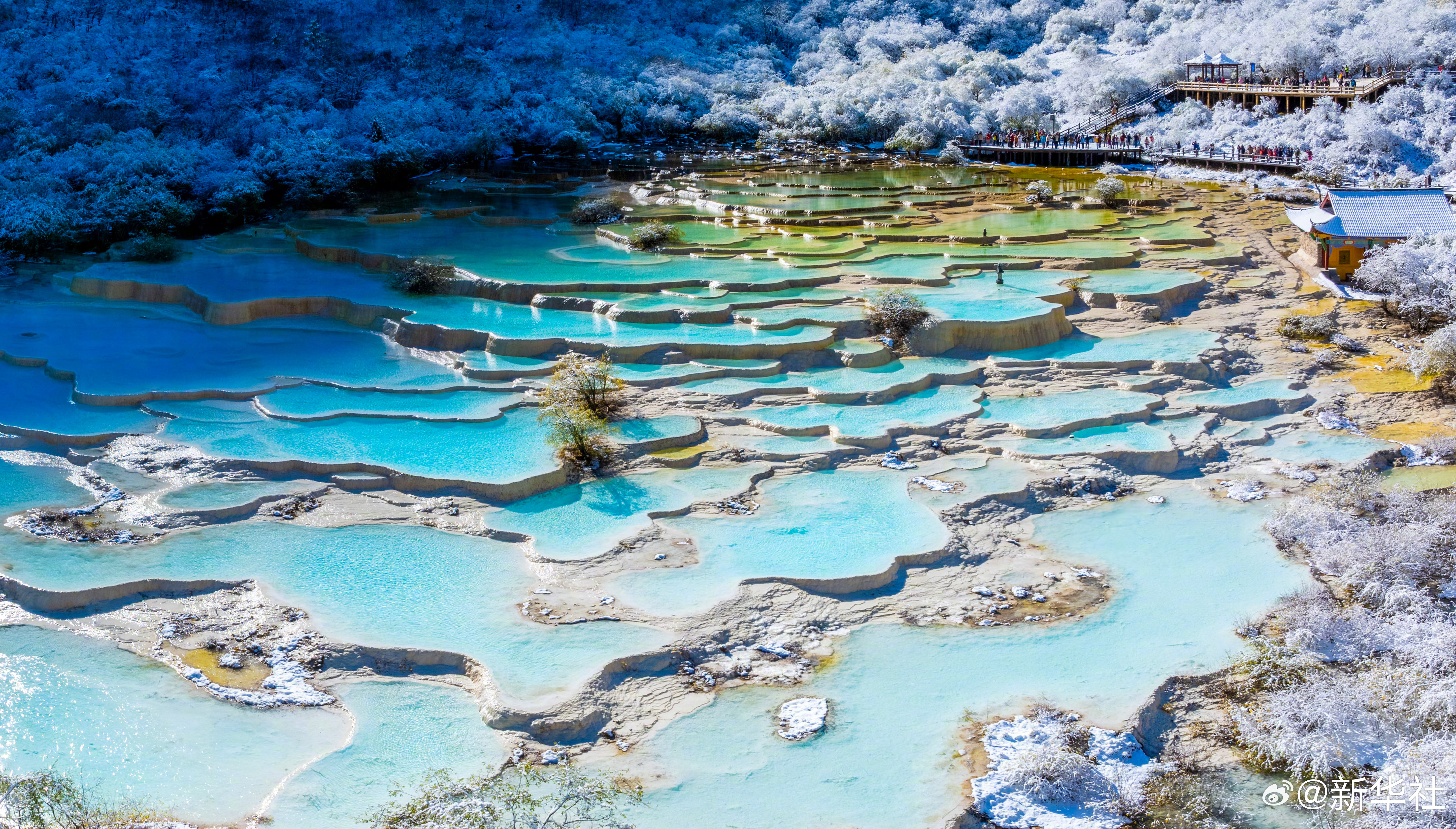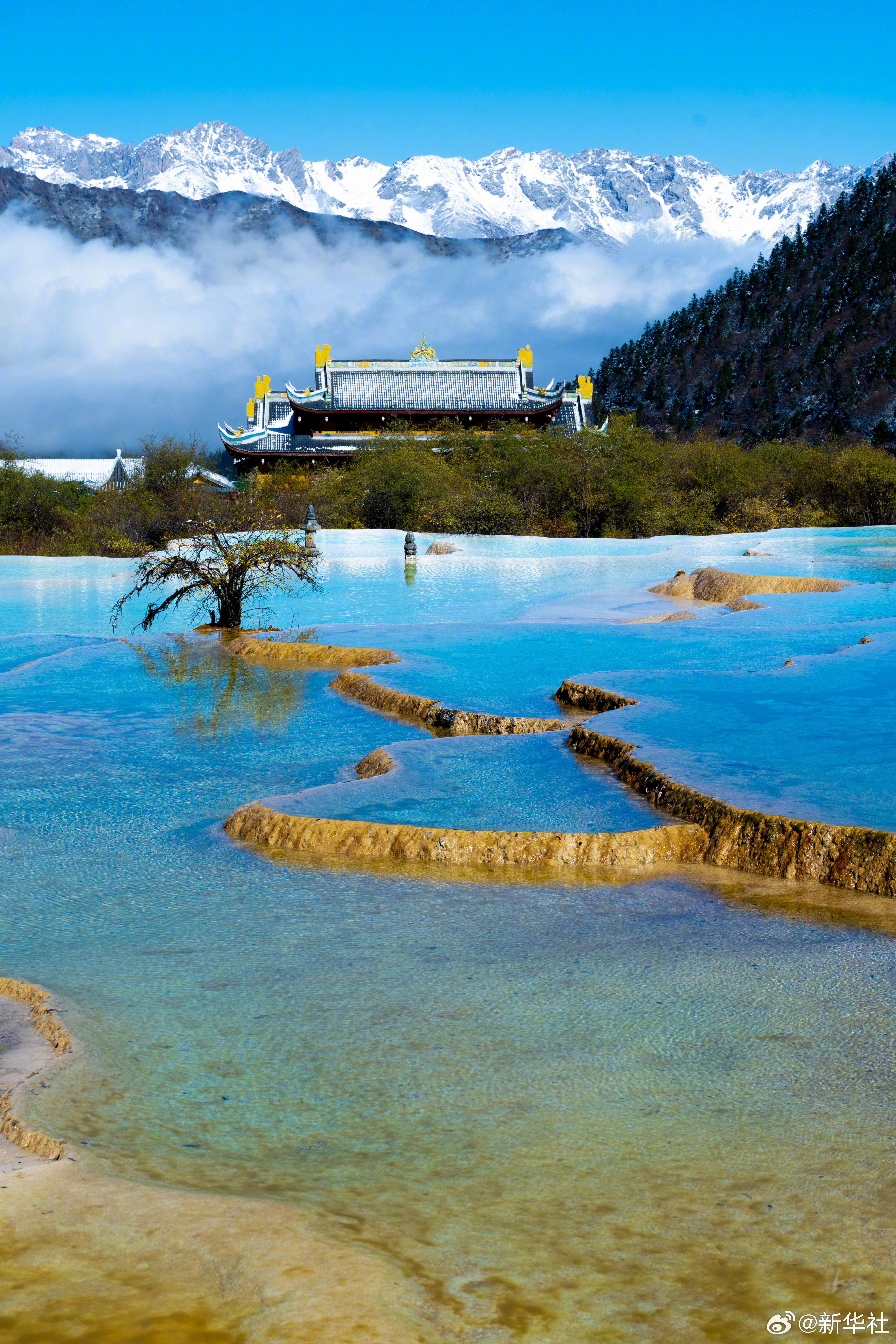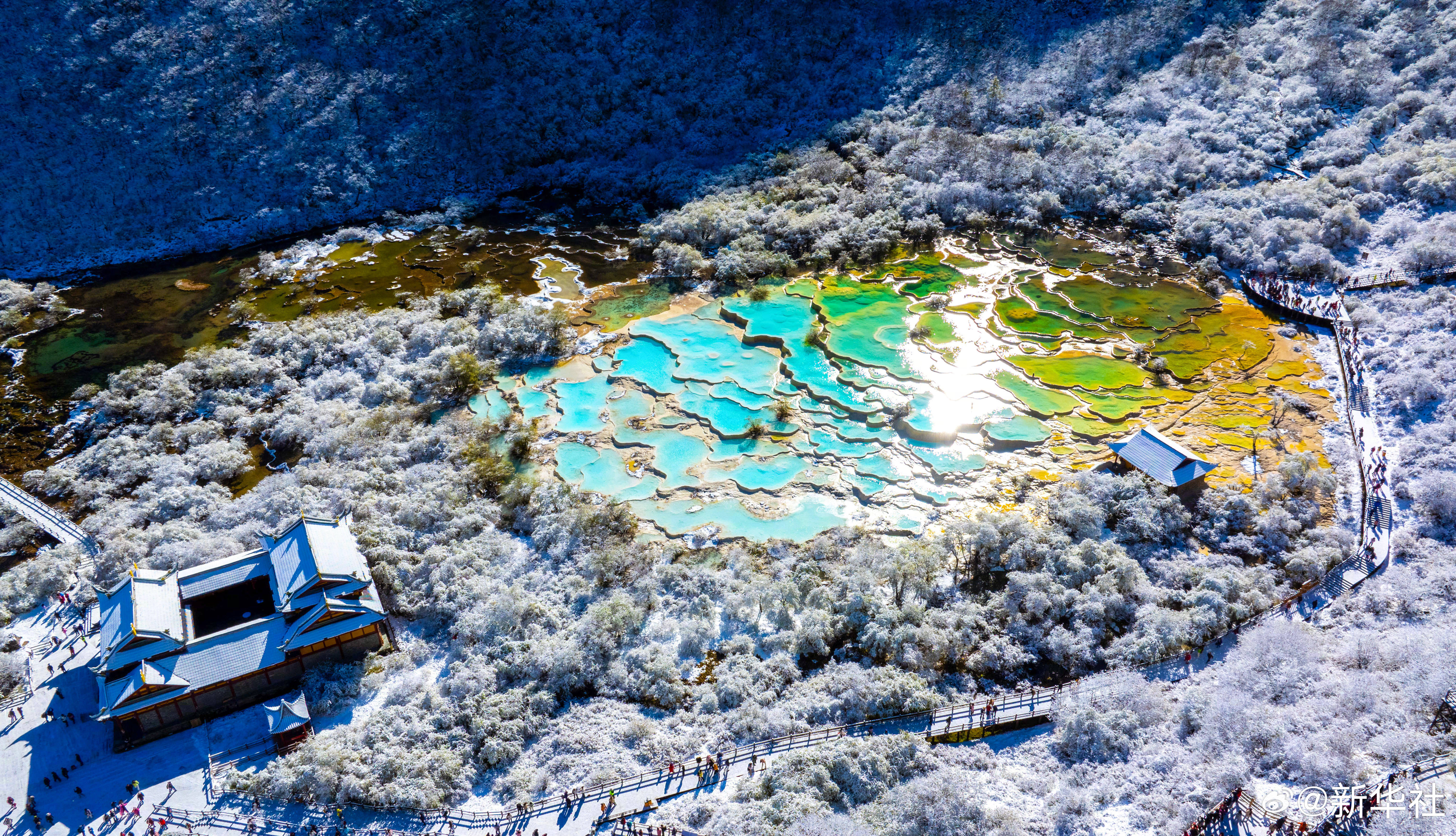 #新华社出图#【#镜头下的黄龙初雪盛景#】#黄龙初雪与五彩池浪漫撞色# 近日,四川黄龙景区迎来今秋第一场降雪,五彩池与皑皑白雪交相辉映,美不胜收。今日迎来霜降,评论区晒出你所在地的深秋美图吧↓↓(摄影:孙家鹏)