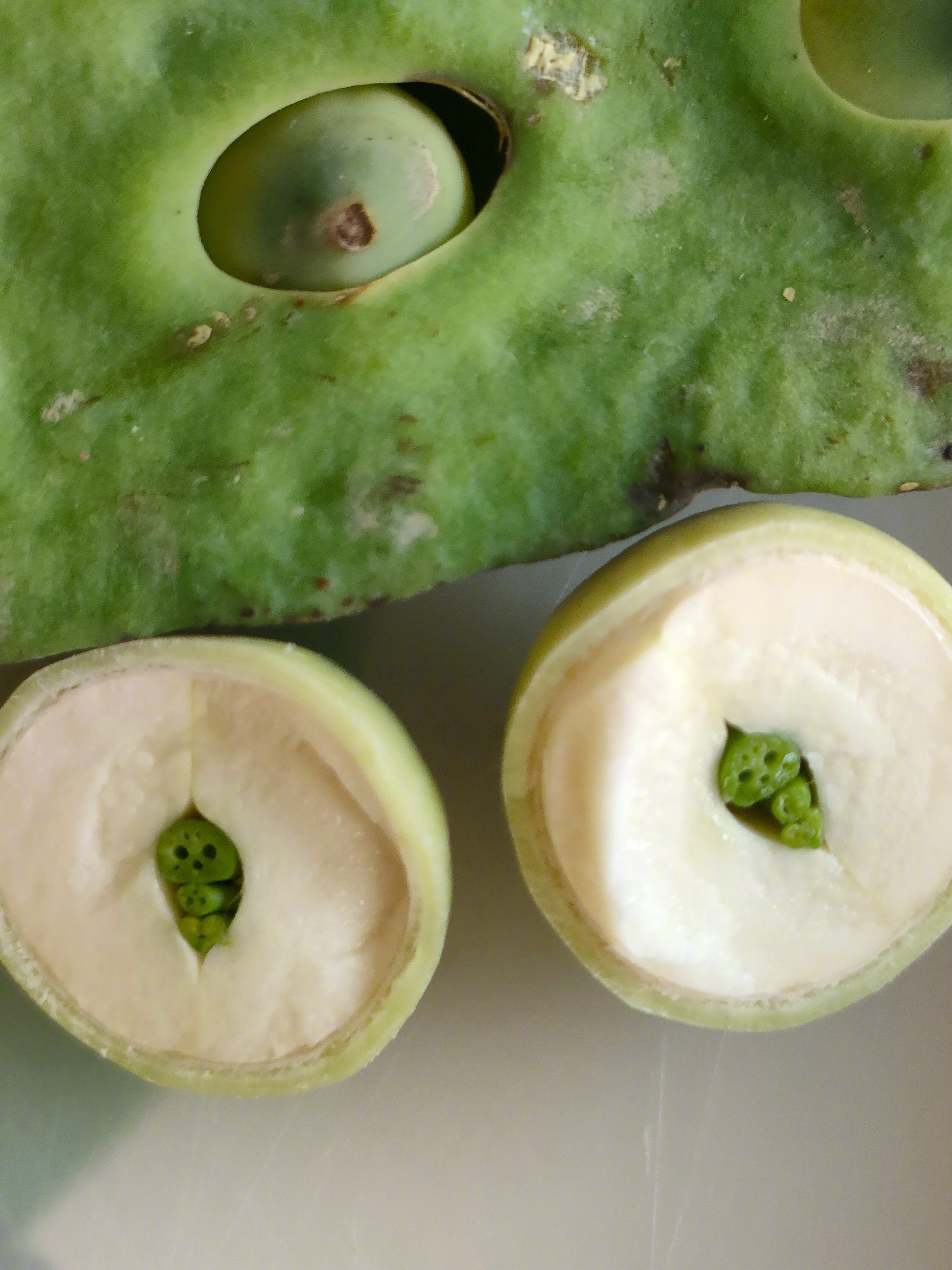 据卖莲蓬的摊主介绍,把莲蓬剥开后,用刀把莲子从中间切开,能发现莲子内的胚芽挺像哪吒的造型,并表示小朋友们都试过很多次了。“我也是听小朋友们讲的,我以前还不相信,但我试过,确实很像哪吒的造型!”摊主告诉大皖新闻记者。