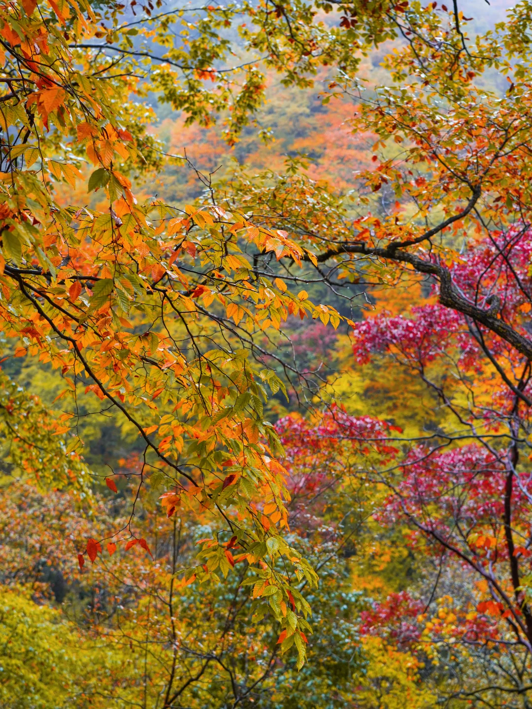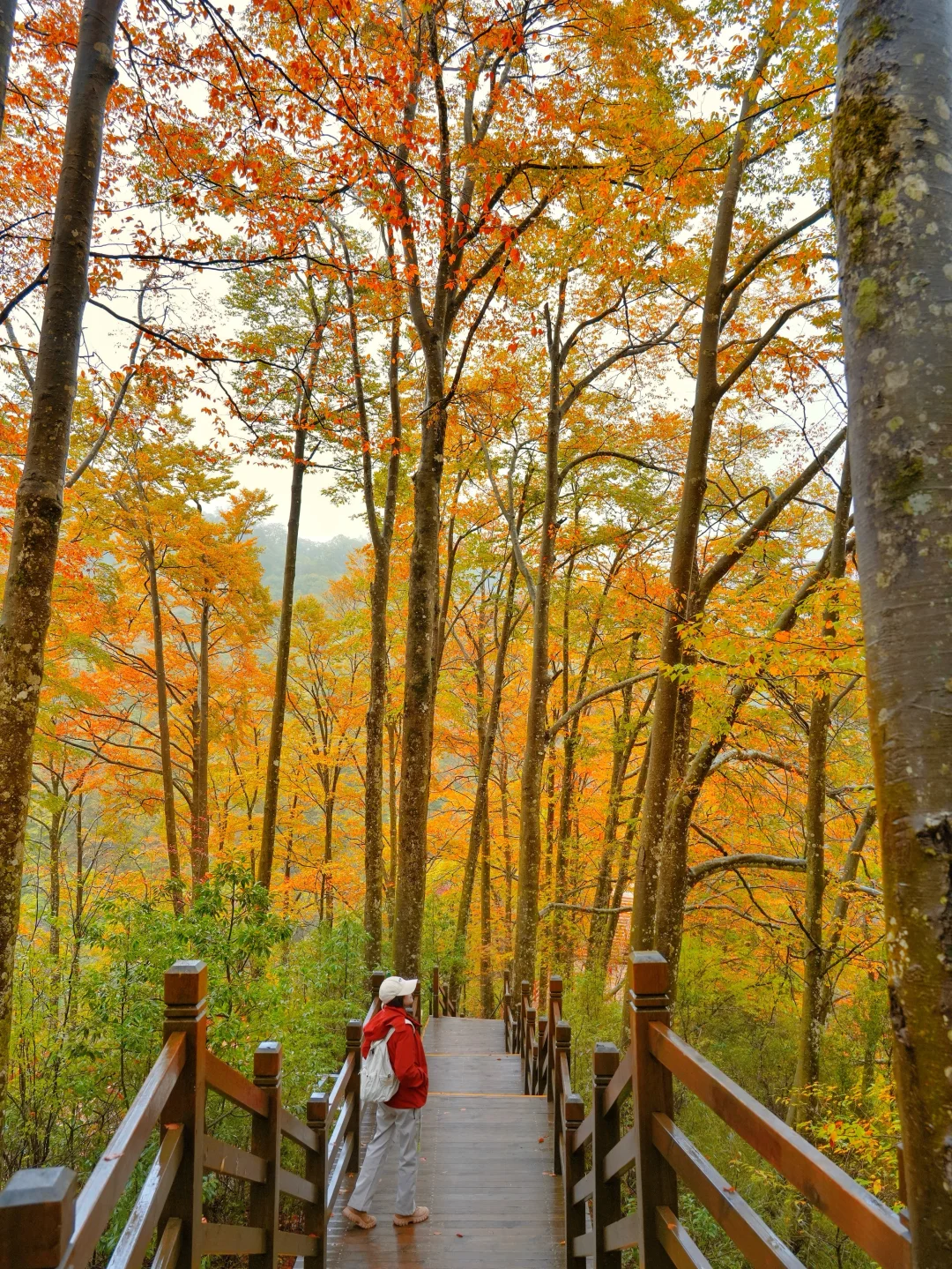 不同颜色的红叶,组成了这个色彩斑斓的光雾山,走近山林🍂仿佛闯入了童话世界~
