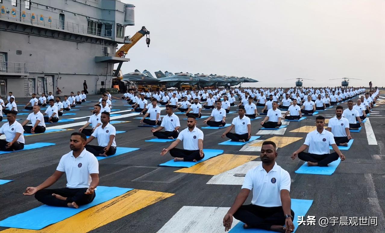 众所周知,莫迪是一个资深瑜伽爱好者, 印度海军为了迎接莫迪前来视察, 便在航母上举行了大型的练瑜伽活动, 所有官兵静坐在航母的甲板上, 形成一道美丽的风景线!