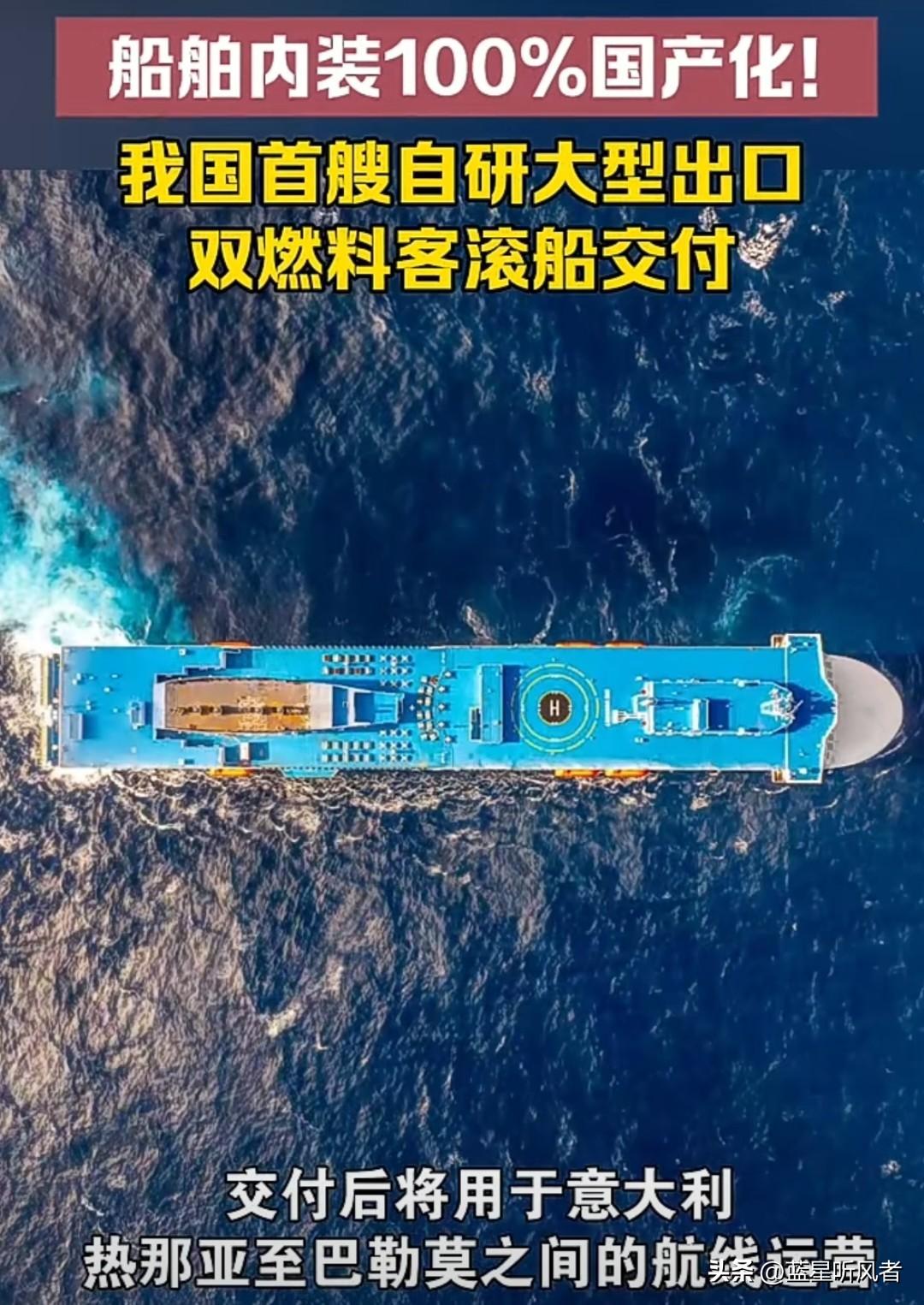 【国产巨轮出海!中国首艘双燃料“海上城堡”交付意大利,背后藏着一个硬核突破】 就在今天,我国造船业迎来高光时刻——广船国际自主研发的超级客滚船正式命名交付!这艘“海上城堡”将扬帆远航,执飞意大利热那亚至巴勒莫航线。这不是普通的船舶交付,而是一次中国智造的“硬核出海”! 究竟有多硬核? 1. 100%中国血统:从钢板焊接内饰装修,全船国产化率百分百,连一颗螺丝钉都是中国造! 2. 双燃料黑科技:LNG清洁动力+4台9缸巨无霸发动机,既能狂飙25节又能减排,船底涂满7200㎡“护肤霜”减少摩擦能耗 3. 海上移动城市:12层甲板配备观光厅、咖啡长廊,7部电梯连通2800米车道,能吞下550辆轿车 最让人振奋的是,这艘船在83.5%功率下就能达到25节航速,还搭载国产余热发电系统,把节能buff叠满!当欧洲游客在 Tyrrhenian 海上喝着咖啡时,他们脚下的正是中国自主研发的绿色巨轮。 从过去进口万吨轮,到今天出口高科技客滚船,中国造船业正在完成从“追赶者”到“领跑者”的蜕变。这艘船交付的不只是交通工具,更是中国高端装备走向世界的通行证! 你认为下一步中国智造该攻克哪些领域?是深海空间站还是智能邮轮?评论区见分晓!