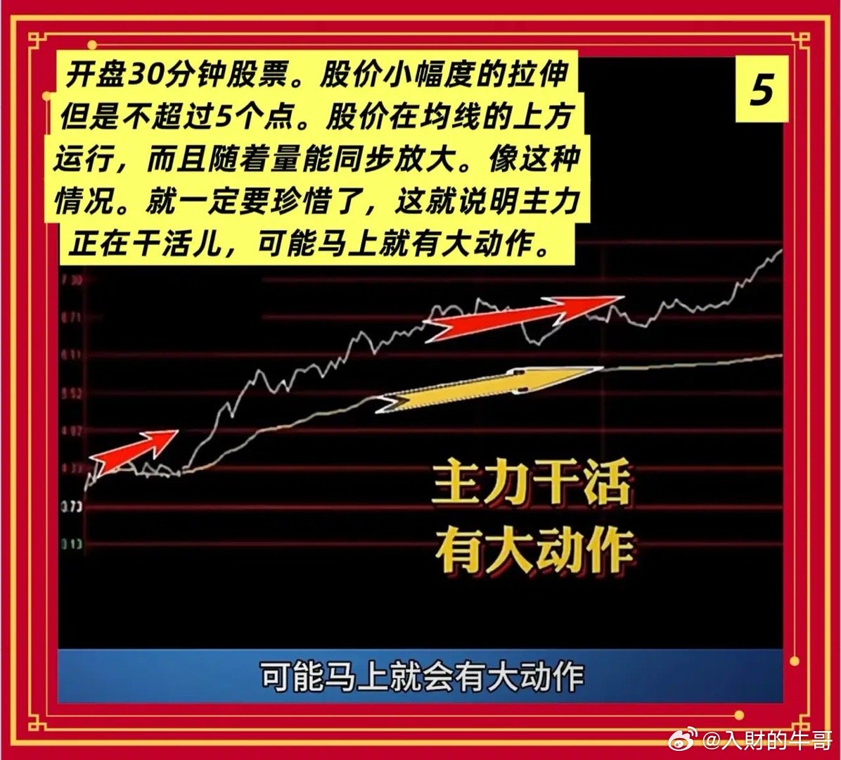 5. 开盘30分钟,股价小幅度拉伸,不超过5个点,股价在均线上方运行,而且随着量能同步放大,这种情况一定要珍惜,说明主力正在干活儿,可能马上就有大动作。