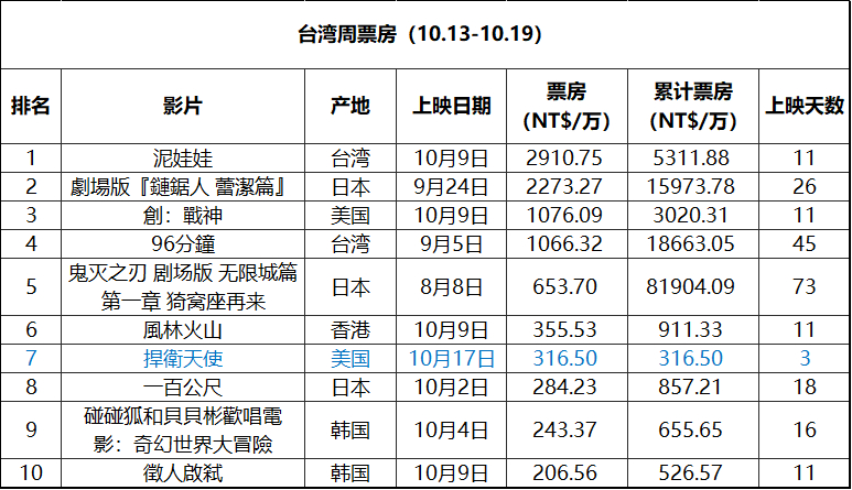 (单位:新台币 数据:台湾电影及视听文化中心)