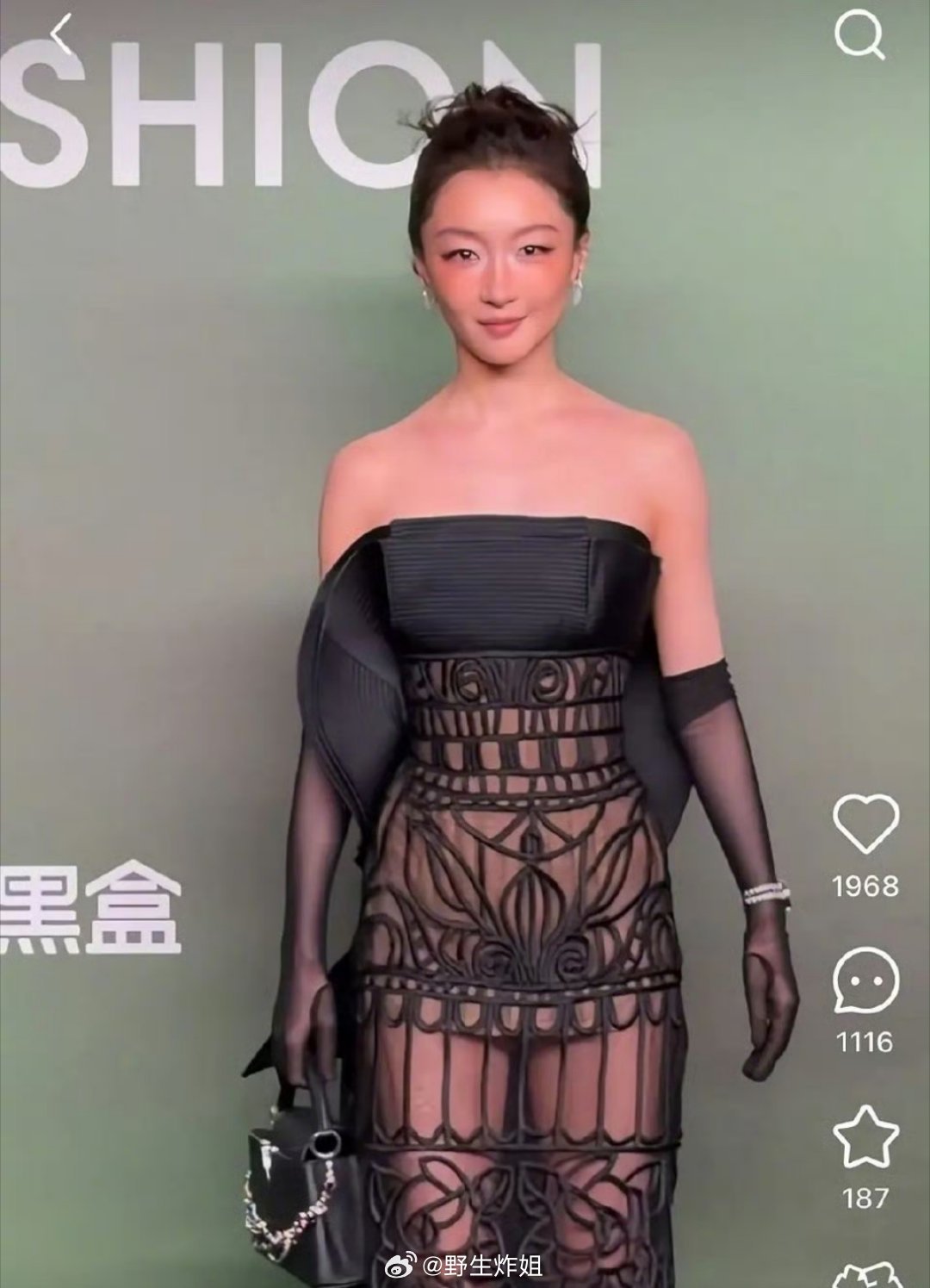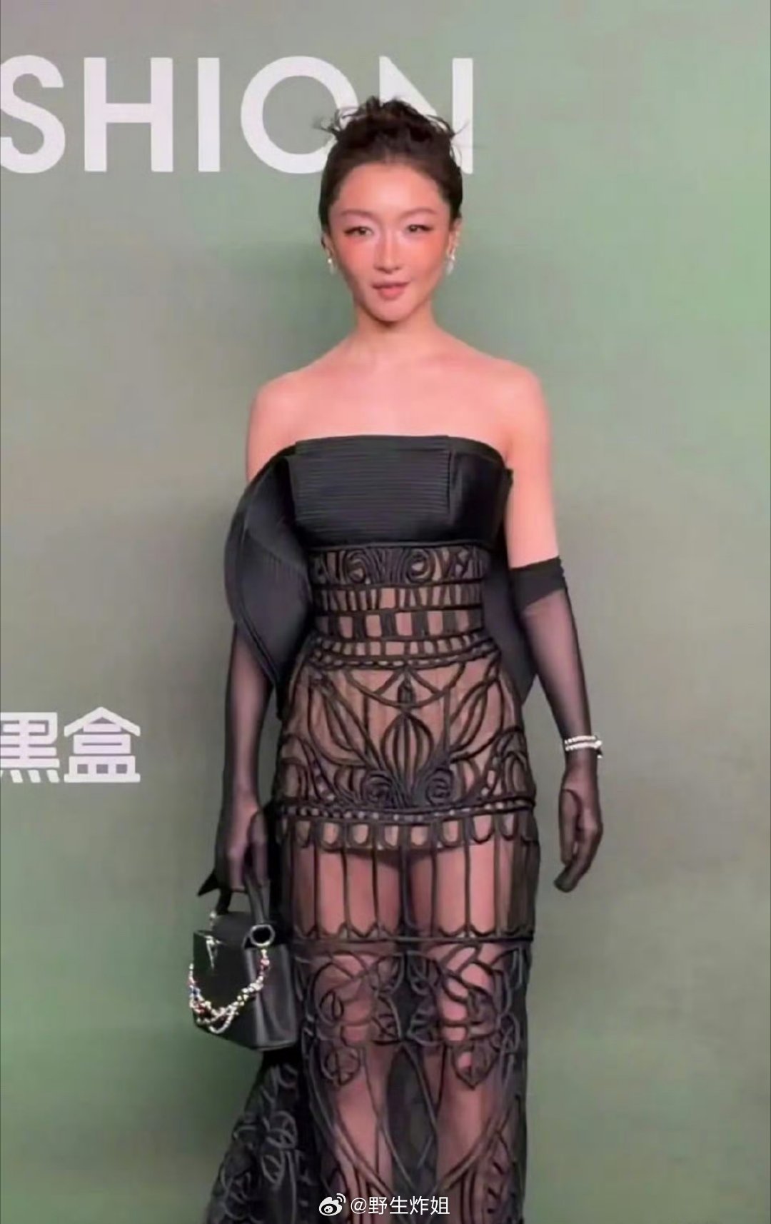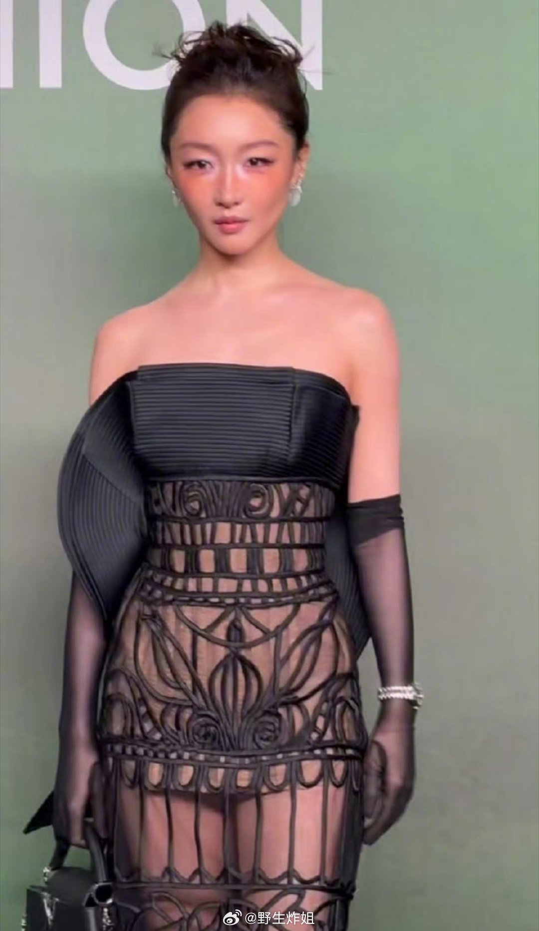周冬雨的vogue盛典红毯图,这位姐是整了个微醺状态吗?整个脸好像腮红过度,衣服横横条条极多,喝上头了随便拿了件衣服? ​​​