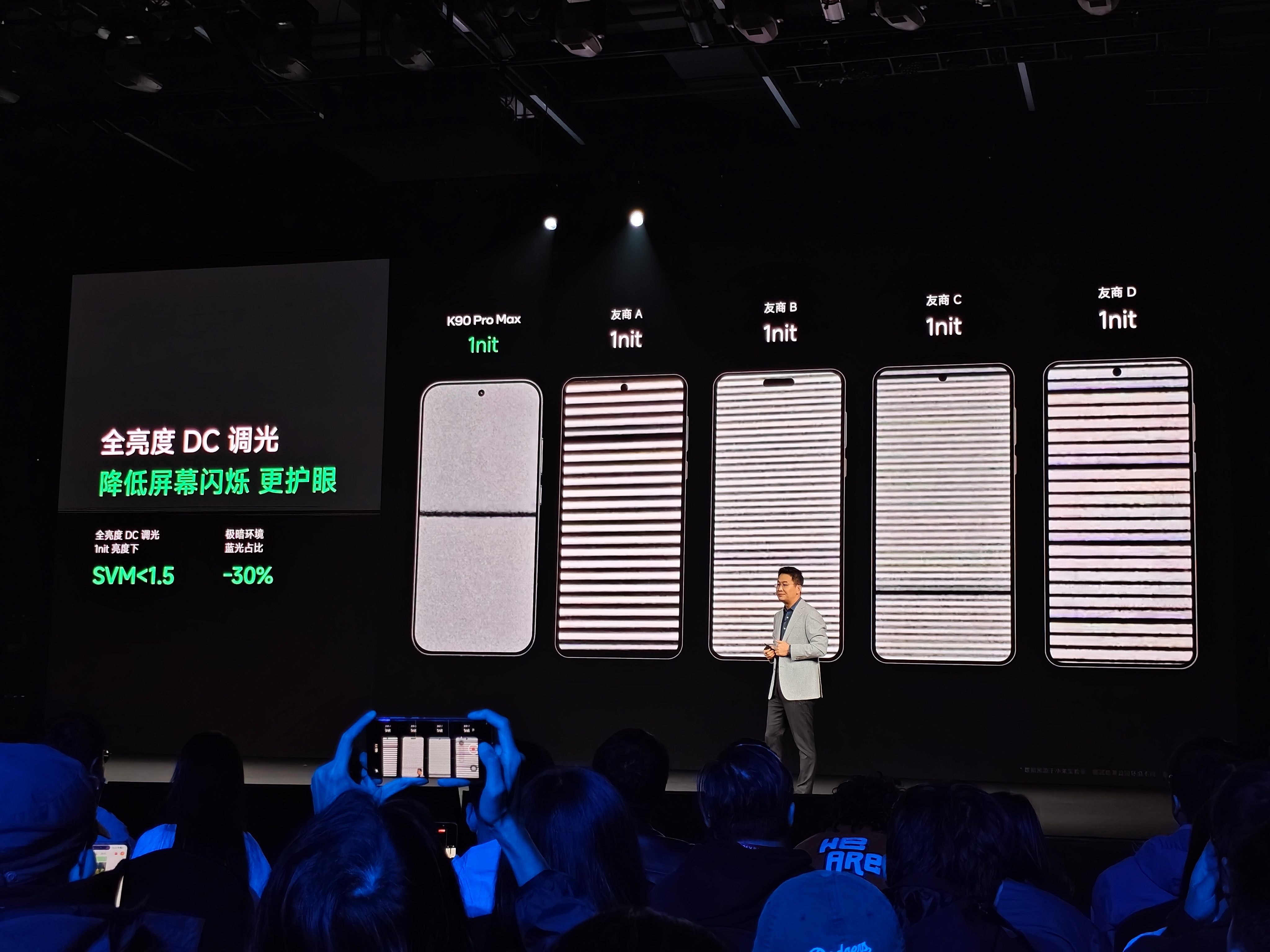 这张对比图很好,重视低亮度频闪的同学可以看看,像我这种对频闪不敏感的人来说,K90 Pro Max的超级像素屏感知会更明显些[奶牛猫]