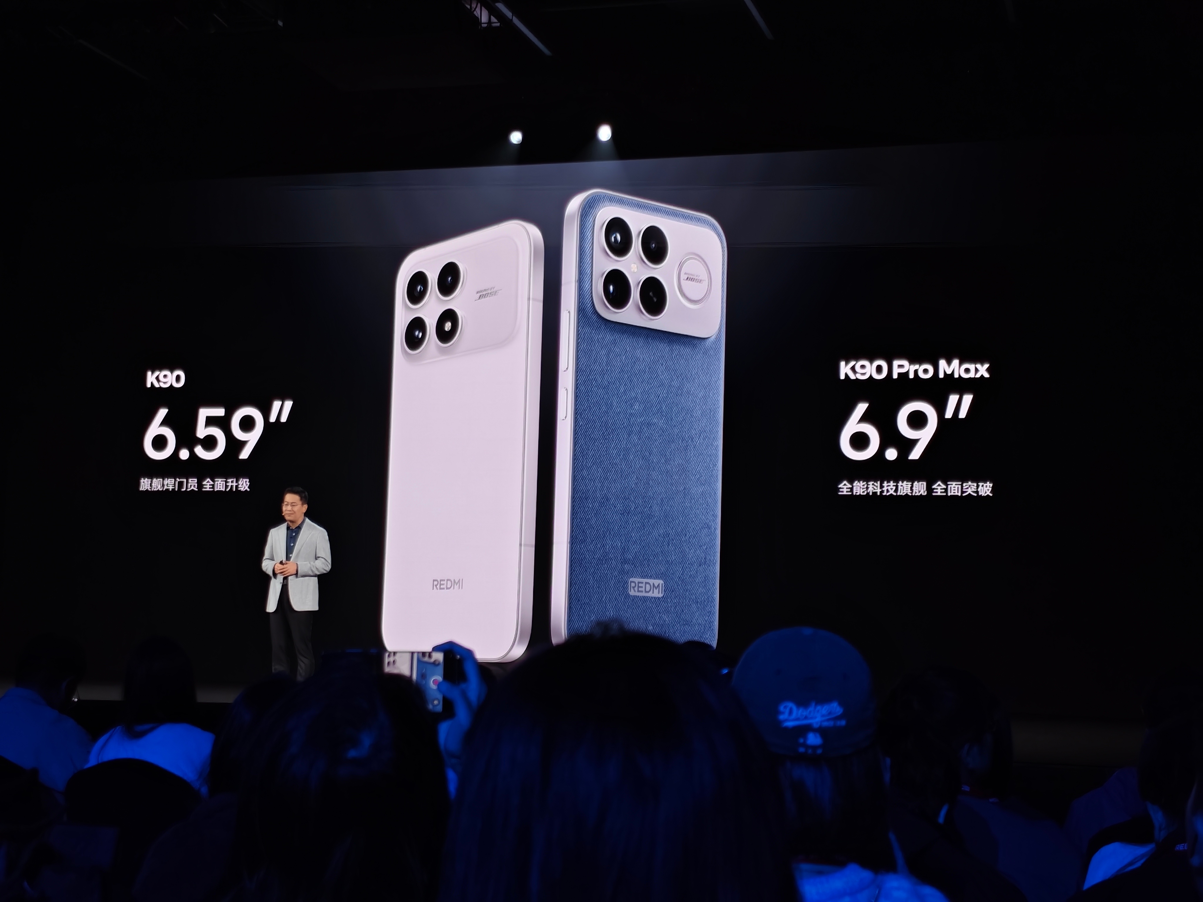 REDMI K90系列有中尺寸和大尺寸两个版本,K90主打适中尺寸和优秀质感(玻璃后盖,冷雕Deco),K90 Pro Max则是和Bose联名超级低音炮。