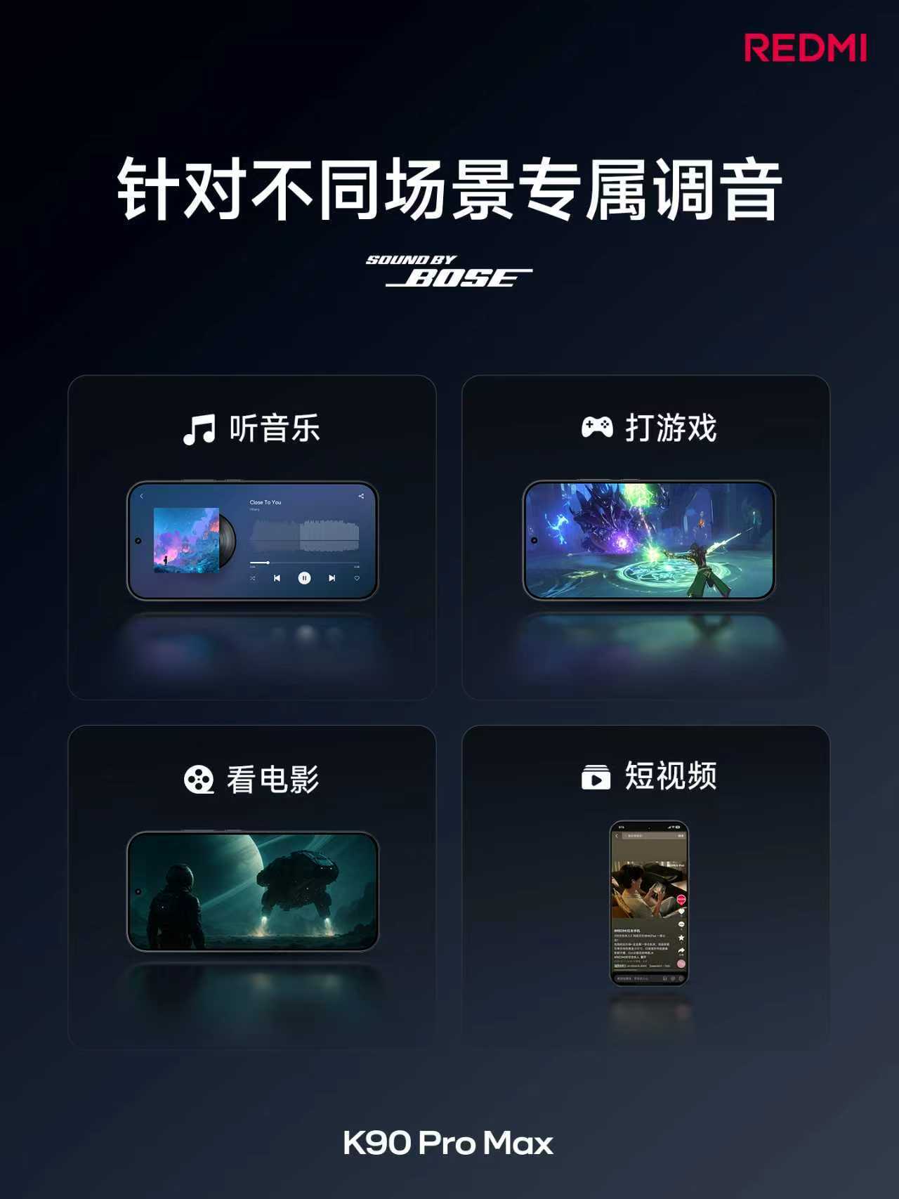 红米K90发布会小米数字旗舰有徕卡影像,现在REDMI K系列旗舰有Bose音频,带来了手机行业唯一的2.1立体声系统。这点很重要,旗舰机必须要有很凸出的领先优势,K90 Pro Max音质体验相信会给用户留下深刻印象。