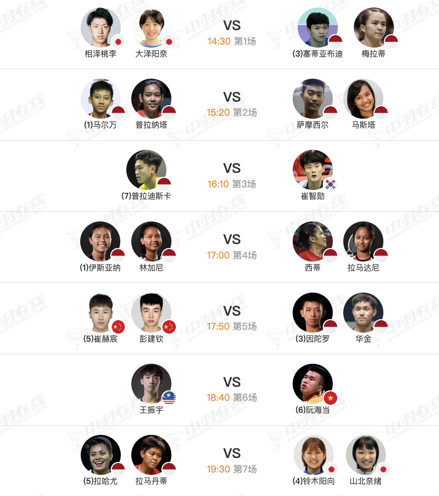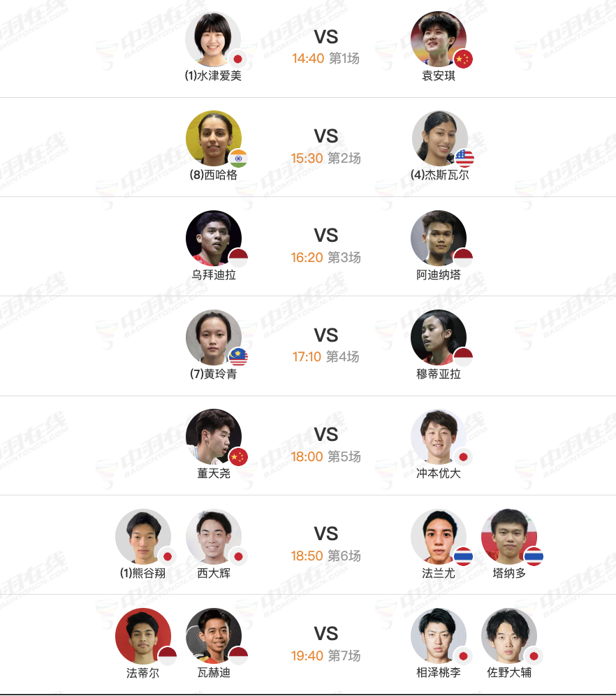 2025年印尼100大师赛❷,10月24日各单项8进4赛程,下午14点30开赛: