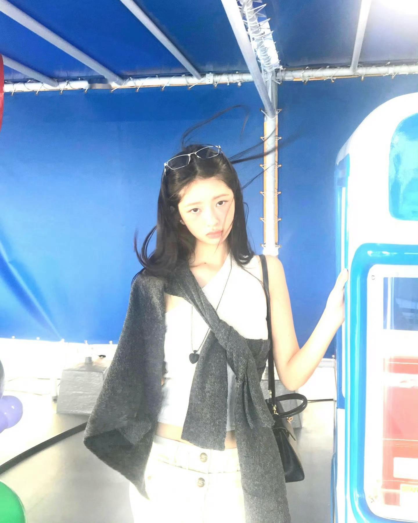 张天爱跟素人合影,胯真的好宽,大宅院似的