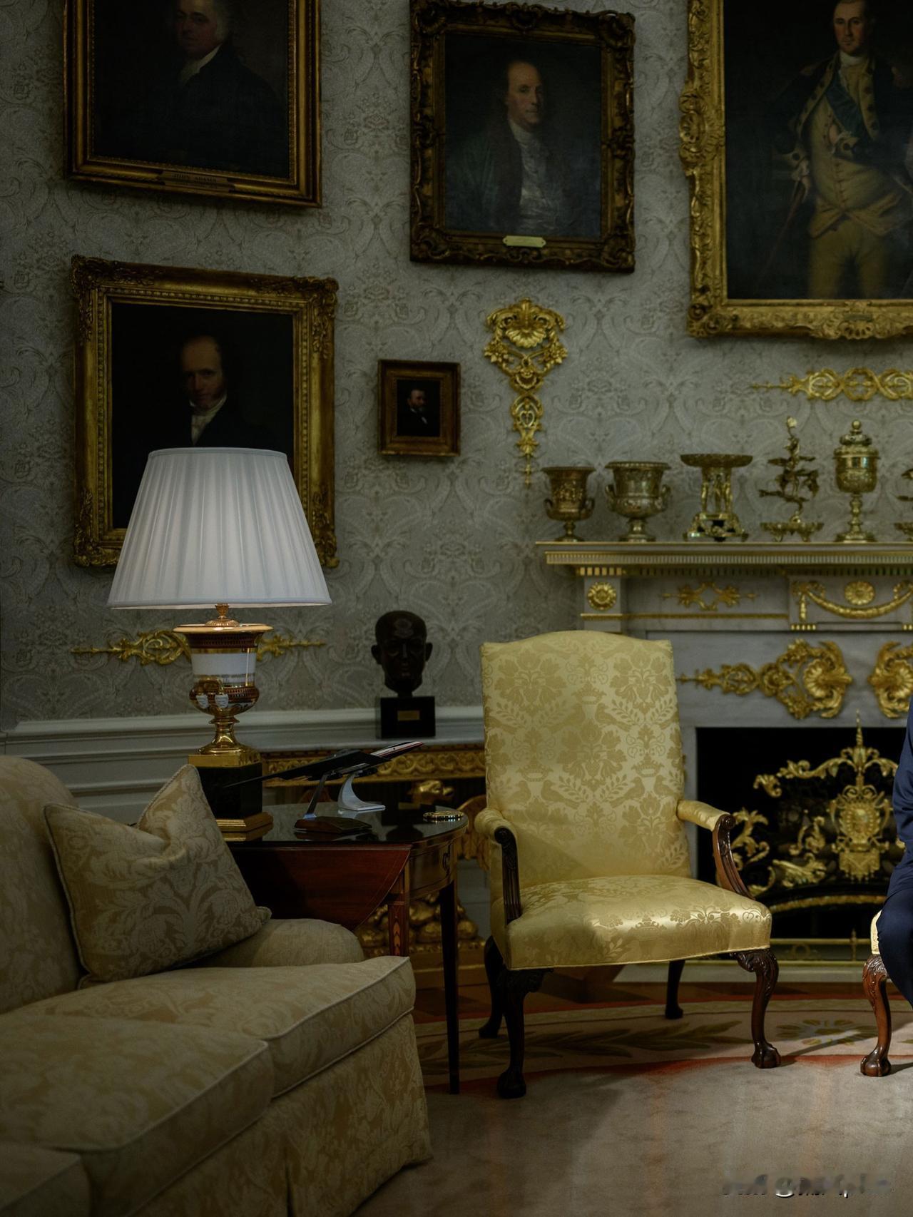 白宫发布了这样一张照片,特朗普一个人坐在灯光昏暗的白宫椭圆形办公室,以此展示特朗普的王者气质。显然,白宫对这样的照片十分得意。 白宫将一整张照片分割成两张,这种方法似乎参照了此前西班牙国王的一次拍照。当时,荷兰摄影师在一间古典屋子里拍摄了西班牙国王与王后,他们分开站在房间的两边,摄影师拍摄完全景之后,然后分割成两张不同的肖像画。而这两张肖像画又可以拼合成一张完整的照片。