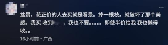 司机跑 500 公里送盆栽压断树枝遭拒收,卖家称盆栽高 2.6 米实际 2.9 米,各方责任如何界定? 安徽六安货车司机冯先生接单运输一棵2.6米高盆栽,装货时发现实际高度为2.9米,通过加高车棚勉强运输。行驶500公里到达目的地后,因路上颠簸,“把树枝搞断了两根”,买方拒付运费,卖家要求冯先生赔偿1500元买下盆栽。最终冯先生含泪赔偿,不仅没拿到说好的600元运费,还倒贴1500元,合计损失2100元左右。 盆景源于中国,被誉为“立体的画”和“无声的诗”。它以植物、山石、土、水等为材料,经过艺术创作和园艺栽培,以小喻大,处处隐喻着大自然的灵山秀水,寄托着爱好者高洁的精神世界,充满了中国传统文化的哲理与审美。不少网友在评论区科普:司机运的是盆景植物,值钱的地方就在于造型,如果卖家是自己也会拒收。 也有网友表示500公里600元的运费比较低。 你觉得这是更多的是谁的责任呢? ------------------------------------ 好似 货运环境就是被这种卷王搞坏的