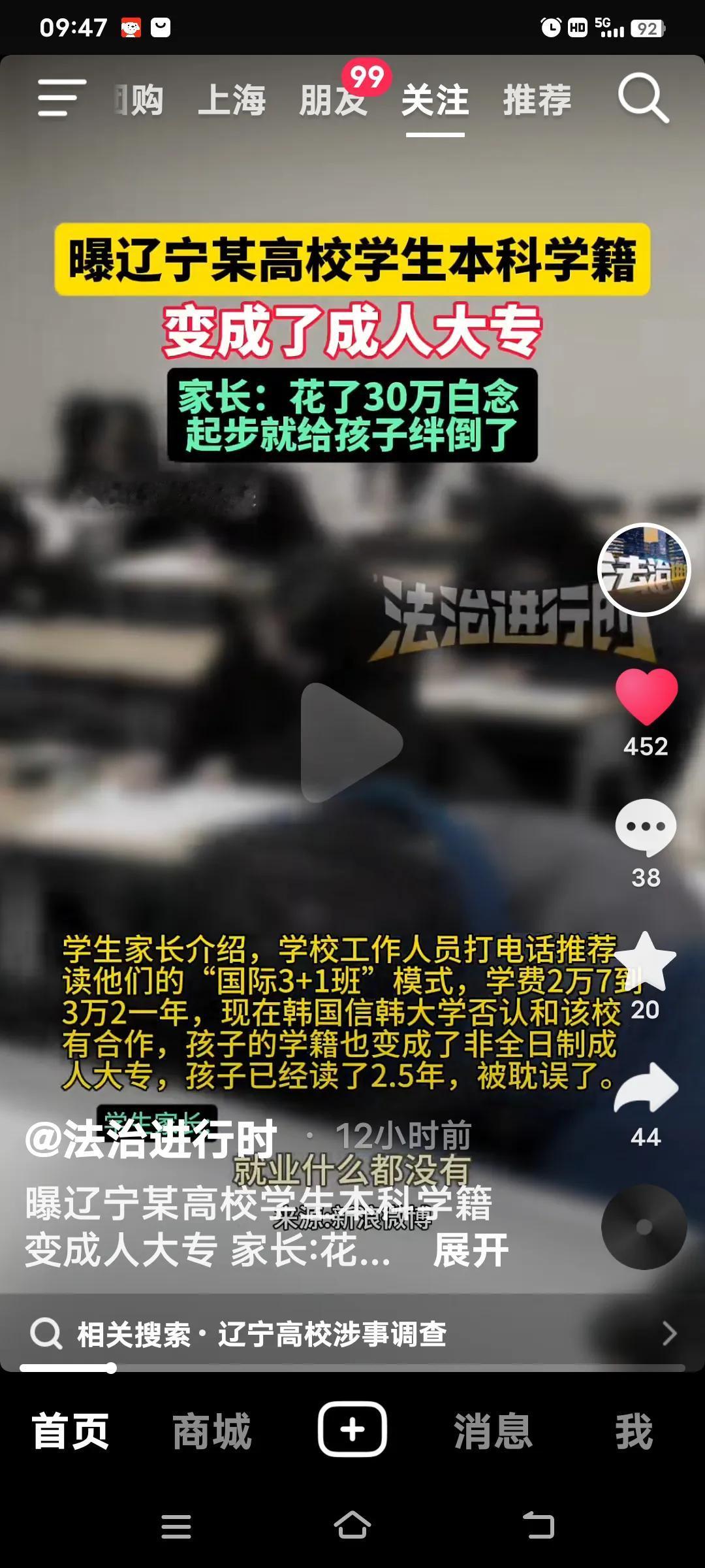 家长花30万送孩子读本科大学,结果白白耽误2.5年,最后拿到的竟然是成人大专文凭。这事儿也太离谱了! 家长反映,当年是学校工作人员打电话推荐他们报的名。可如今韩国信韩大学却不承认和该校有这份合作,这说明该项目根本不正规。哪有正规本科还需要打电话到处推荐招生的?要是想考大学,就选那些知名院校报考。要是分数不够,也别病急乱投医。花了几十万,最后学历还不被认可,这有什么用呢! 看看评论区大家的议论,有人说,可能是孩子分数不够,有人打电话说“来我们这儿”之类的。我觉得很有可能就是这样,真是糊涂啊!白白扔了30万,孩子还是没拿到像样的学历,就是这个道理吧! 成人本科好考吗 大专升入大学 成人教育大专