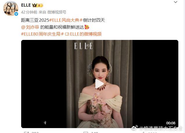 刘亦菲 VOGUE 20 周年盛典的祝福视频,登 ELLE 当日首条微博,时尚圈这波很有意思。