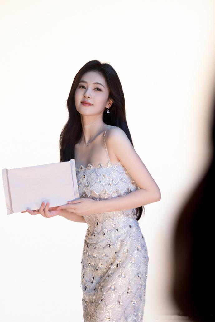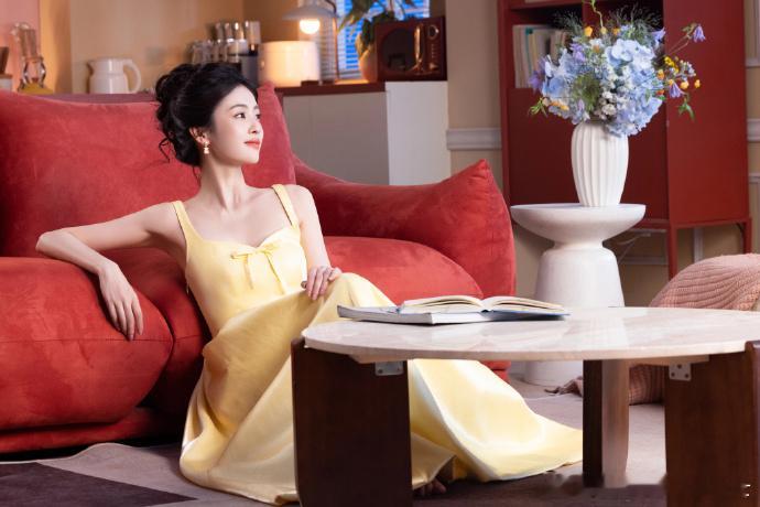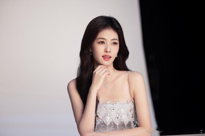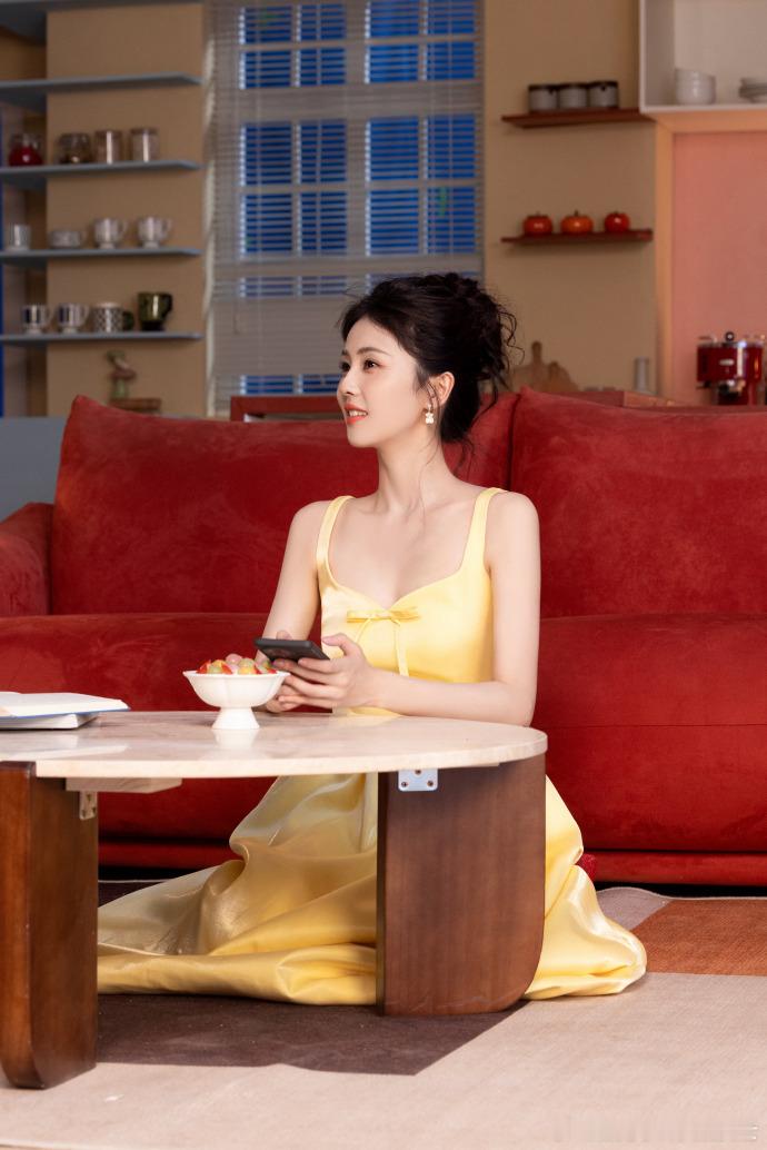 白鹿黄色吊带裙白鹿银色珠光吊带裙 亮黄色吊带裙撑场,肩颈线条优越,“遇见好运” 造型配简约配饰,超像夏日小太阳。