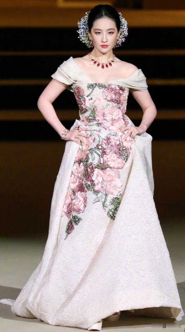 天仙和七哥的红毯,一个仙一个野,都很美! 刘亦菲这波造型是“把春天别在头发上”——低盘发坠着满天星,浅纱裙绣满粉牡丹,再搭红宝石首饰,柔得像浸了月光,贵气得毫不费力,往那一站就是“人间富贵花本花”。 戚薇直接玩“花裙子暴击”:黑丝绒露肩裙撑满姹紫嫣红的鲜花,紫兰、橙菊、玫红掌堆得像移动花园,冷艳脸蛋配疯批花裙,又美又飒,走路都带“生人勿近”的气场。 一个是温婉贵气的仙系美人,一个是张扬热烈的野系女王,天仙赢在“柔中带奢”,七哥胜在“敢穿敢炸”——反正红毯这局,她俩一个美到心尖,一个野到出圈,你更喜欢谁的风格?