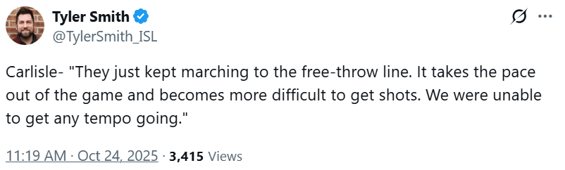 赛后,步行者主帅里克-卡莱尔接受了队记TylerSmith的采访,谈到了本场失利: