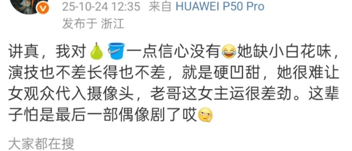 说的对 桐姐确实没啥小白花味甚至略有点甜腻,但是配老呃还是绰绰有余的。