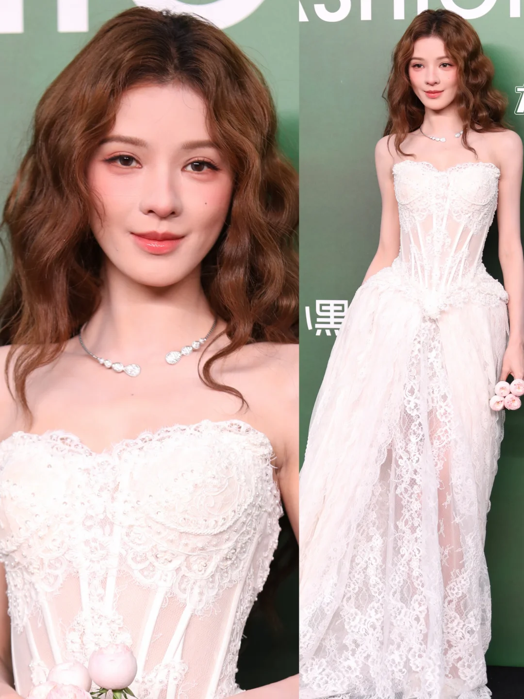 一开始我怀疑是礼服的问题。到后来我怀疑是发型的问题。直到刷到模特穿同款的