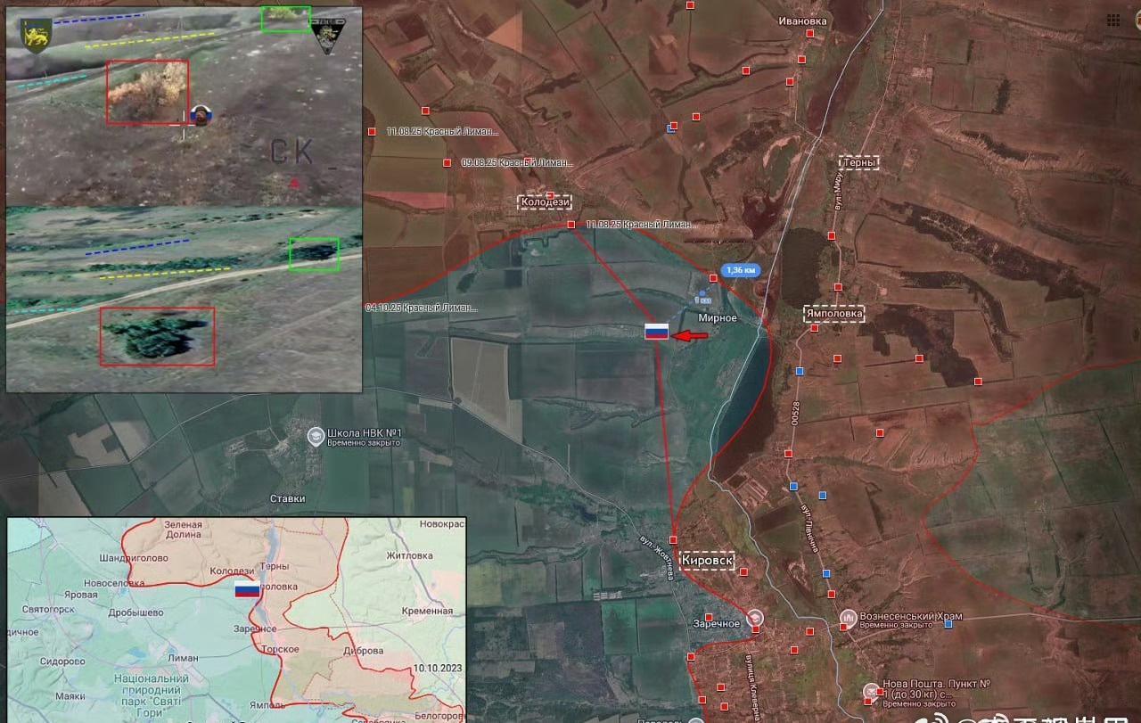 红利曼-米爾诺耶战线态势: 在红利曼地区,俄罗斯武装部队已推进至热列别茨河西岸,并沿科洛杰济-基洛夫斯克一线控制了新阵地。 (俄乌网)